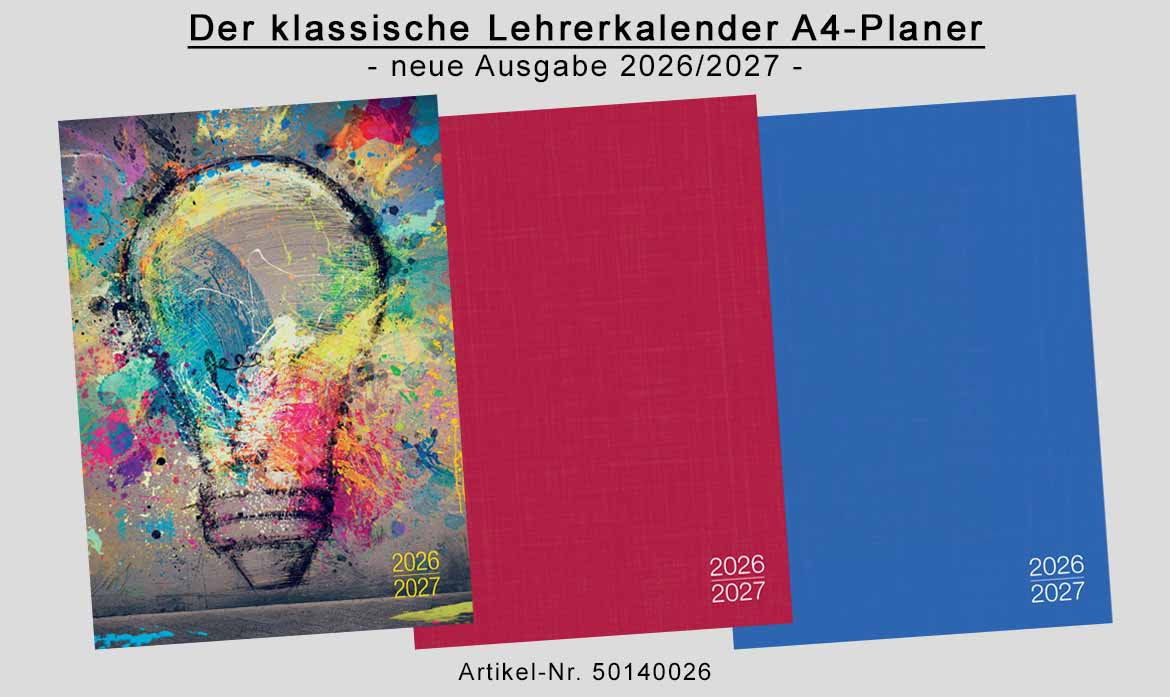 Die Kalender, Gruppentagebücher und weitere Artikel für das Schul- und Kita- Jahr 2026/2027 sind bestellbar und auch lieferbar.