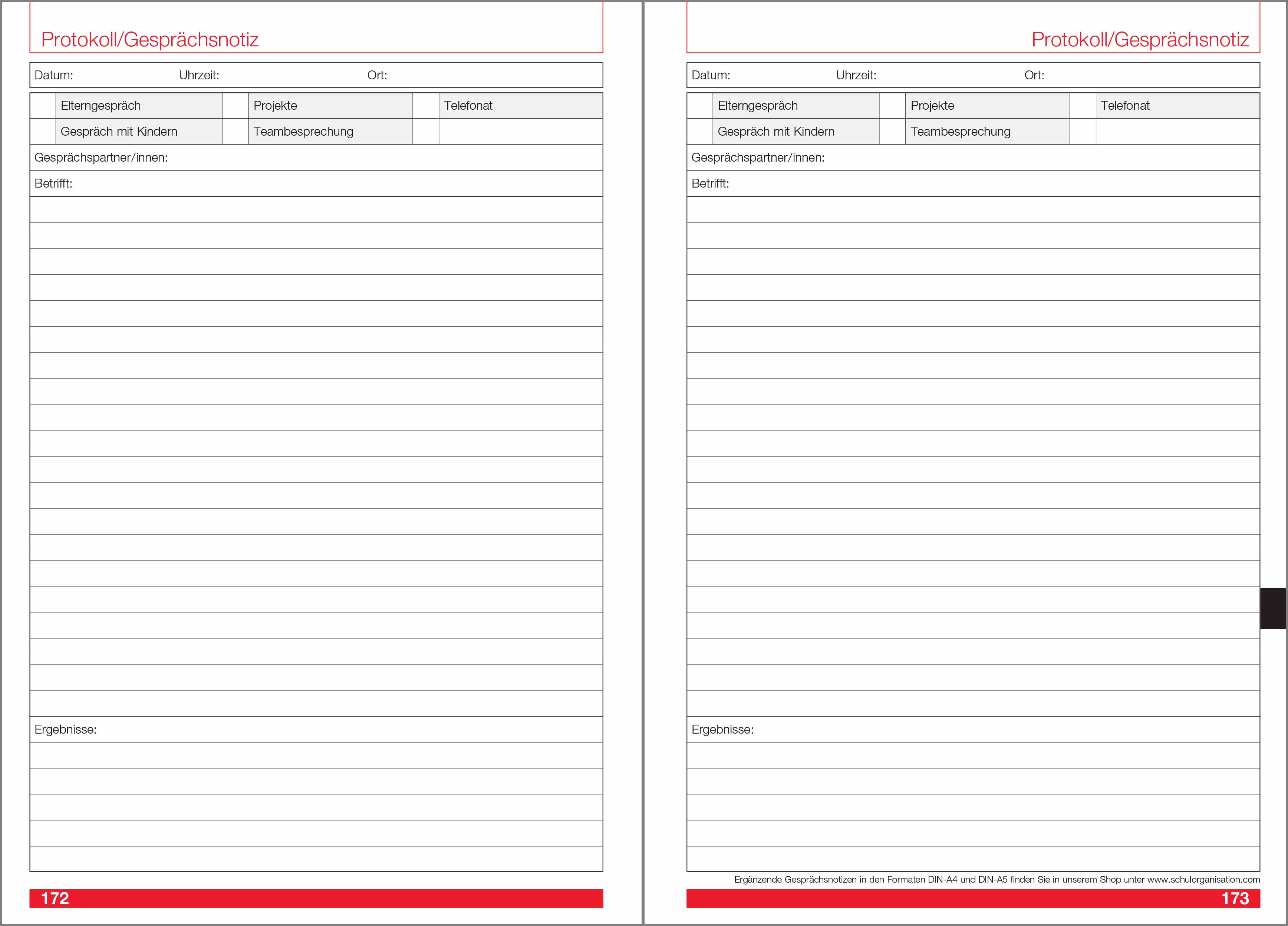 Seiten Gesprächsnotizen für bis zu 22 Protokolle,