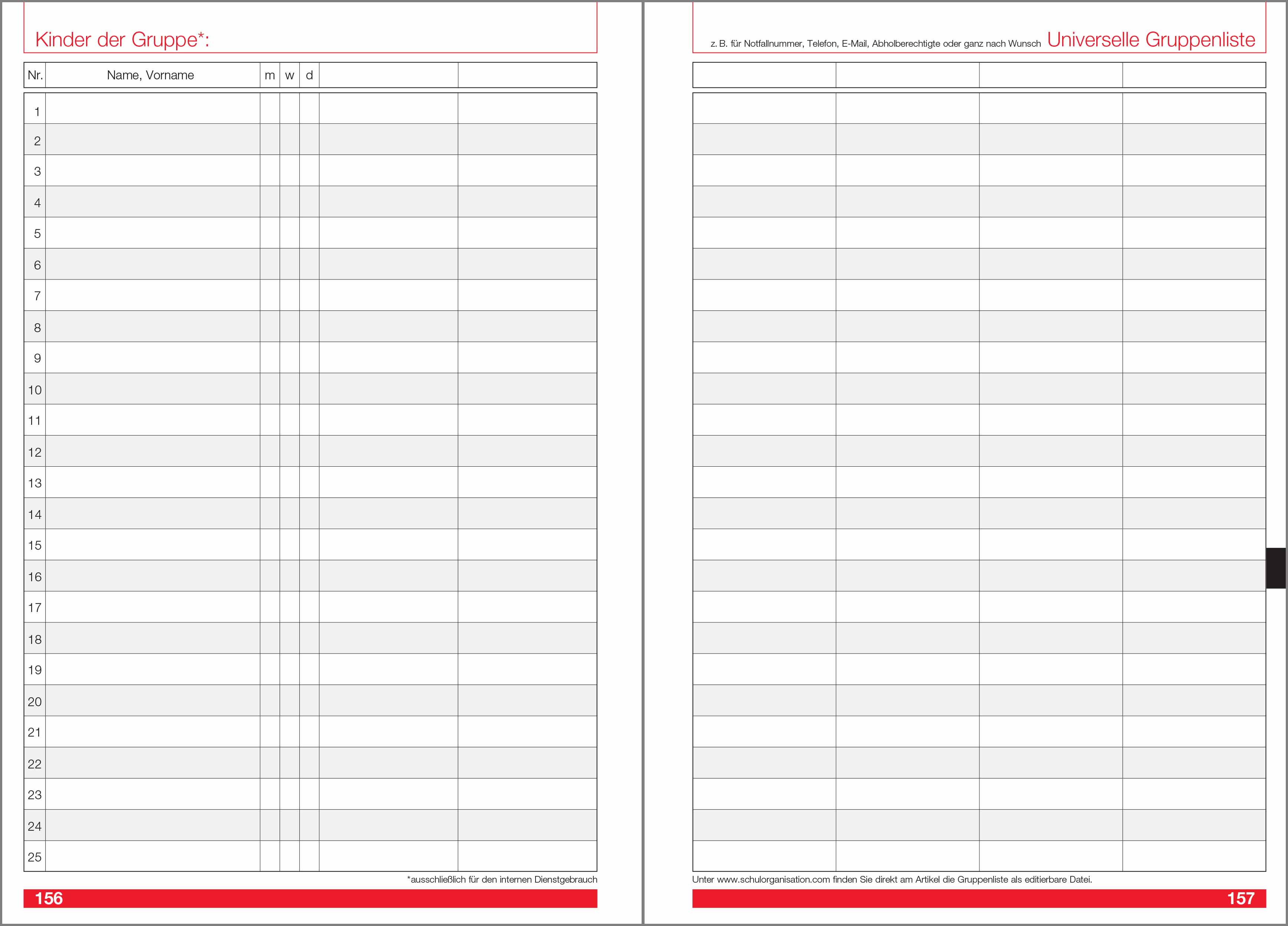 Universelle Gruppenlisten, für bis zu 8 Gruppen,