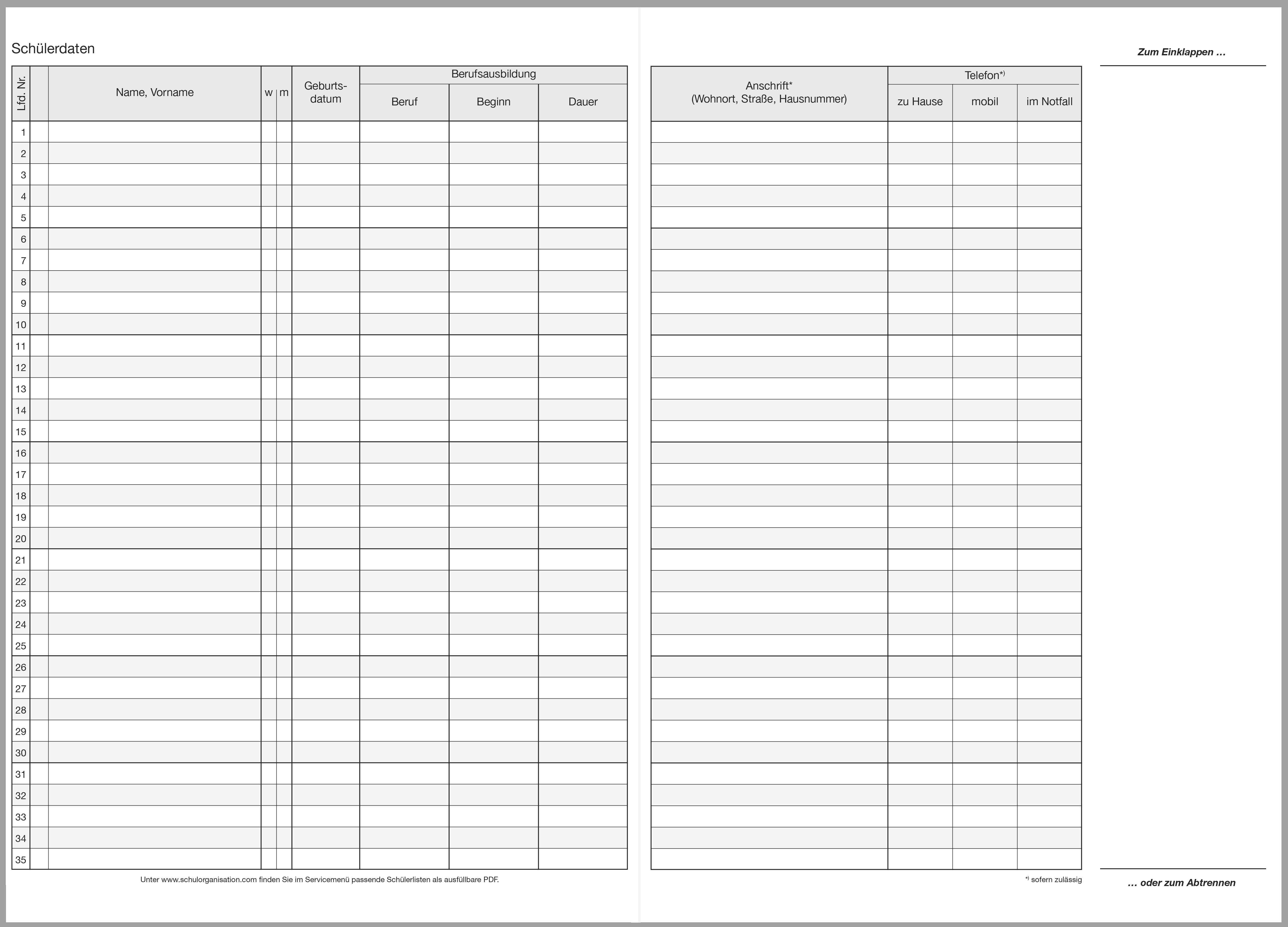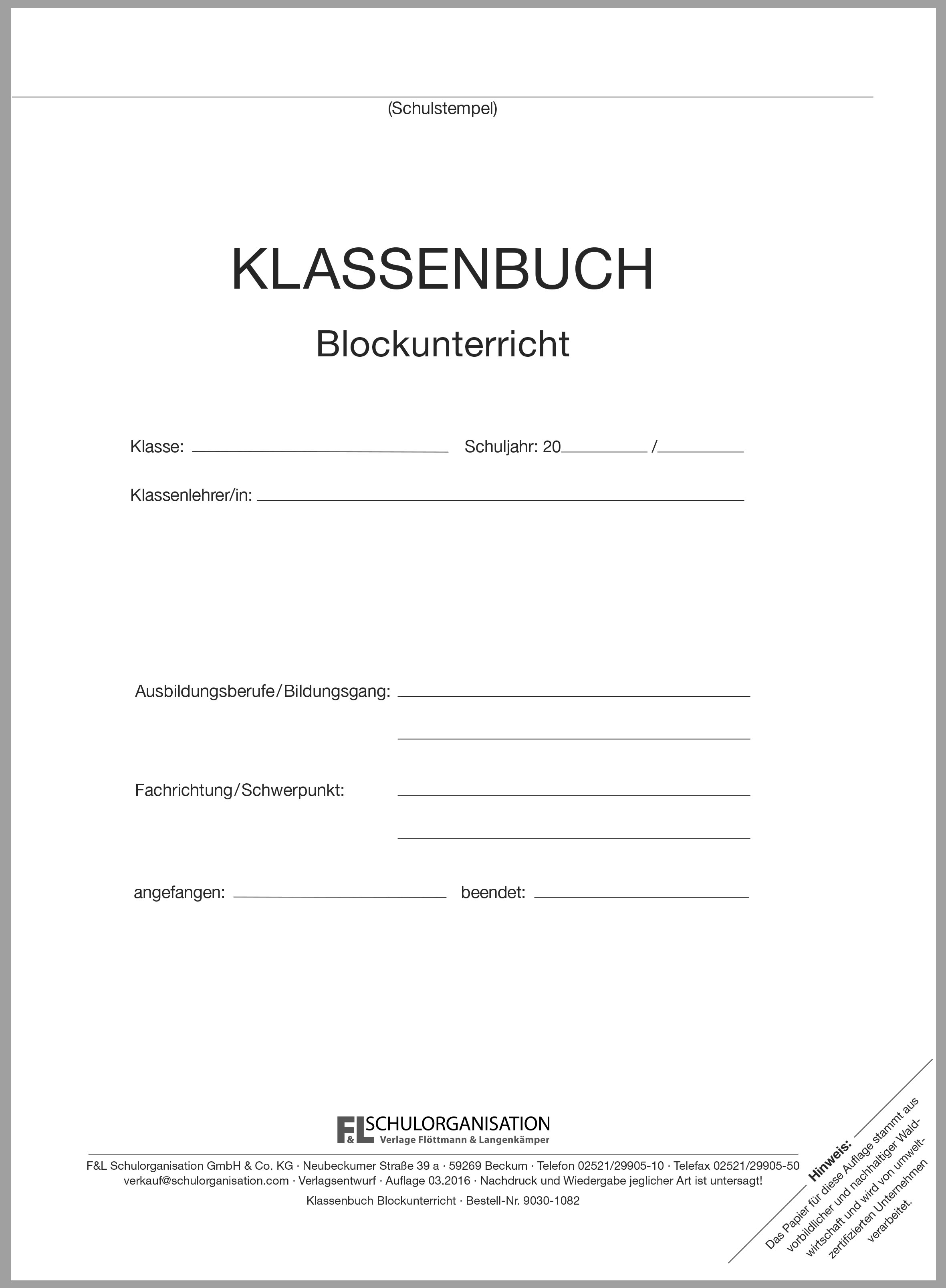 Klassenbuch speziell für den Blockunterricht mit ausführlichem Schülerverzeichnis
