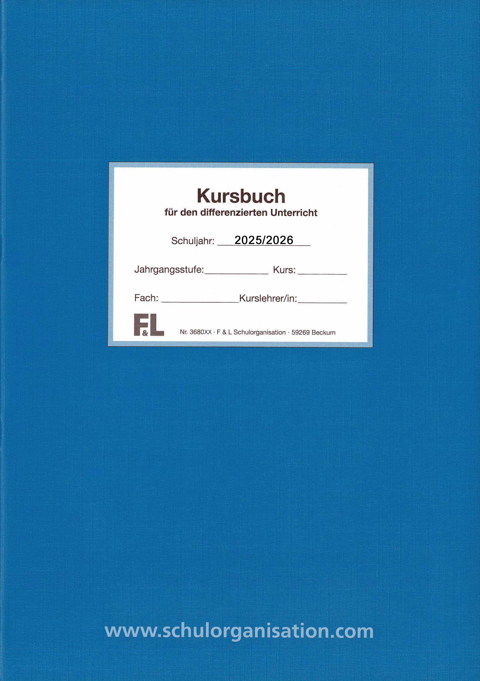 Kursheft für ein Schuljahr mit Schülerverzeichnis für 38 Schüler, monatlichen Versäumnislisten mit eingearbeitetem Kalendarium des betreffenden Schuljahres, mit Ergebnislisten und Unterrichtsberichten für bis zu 288 Eintragungen. Die Kurshefte sind ideal für den Nachweis von Unterricht jeglicher Art außerhalb der Eintragungen im Klassenbuch und eignet sich zudem hervorragend für die vielfältigen Nachmittagsangebote.