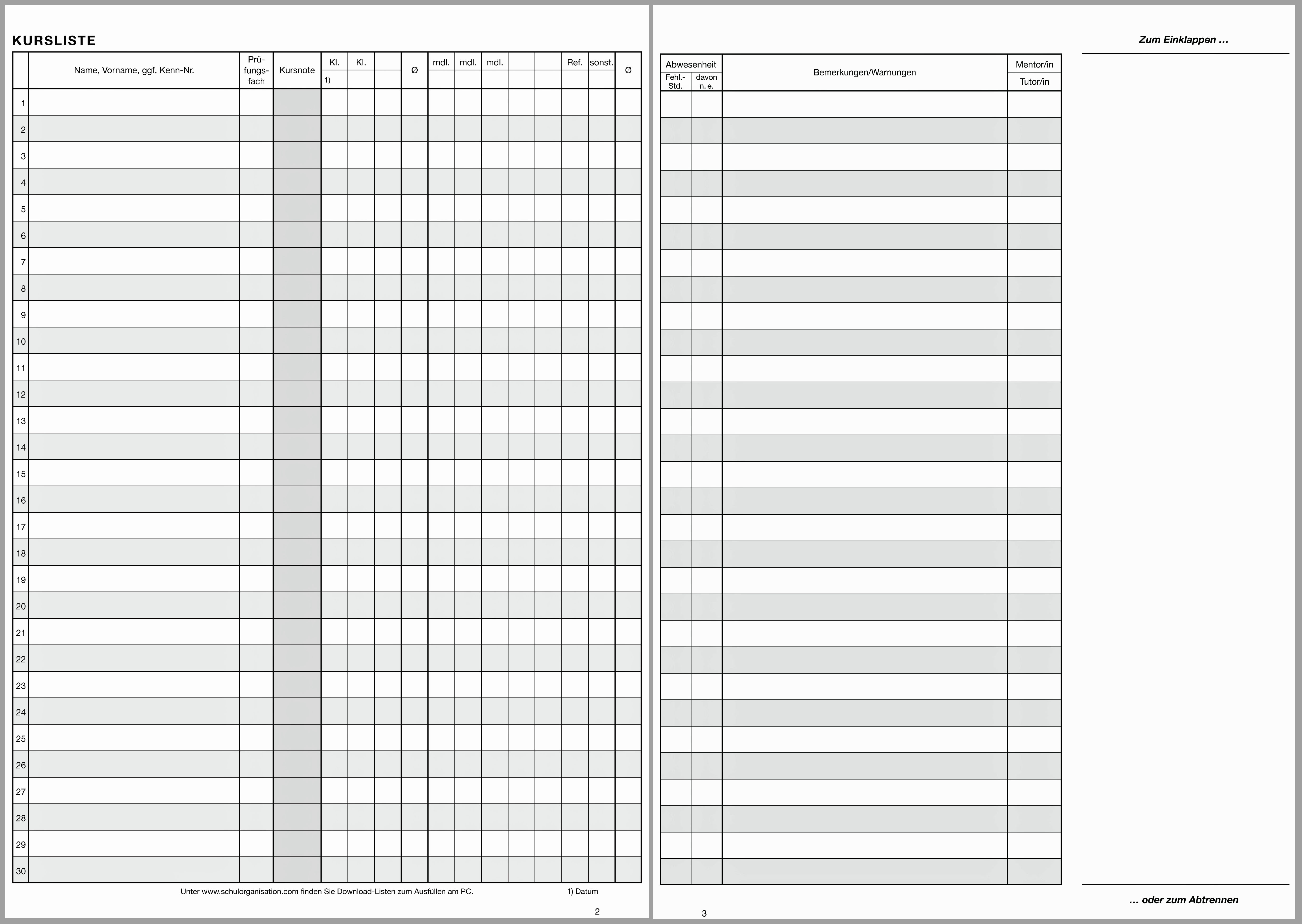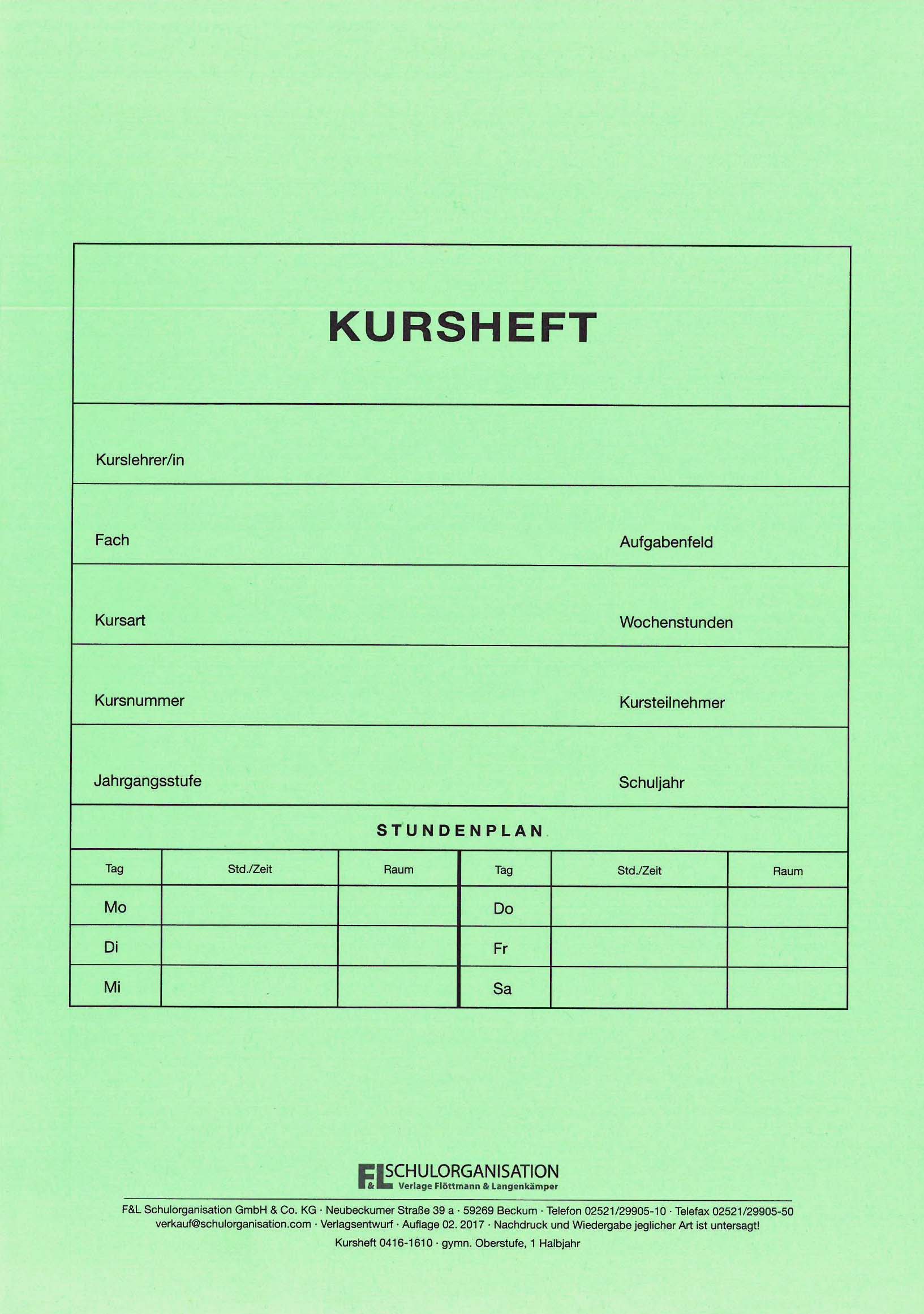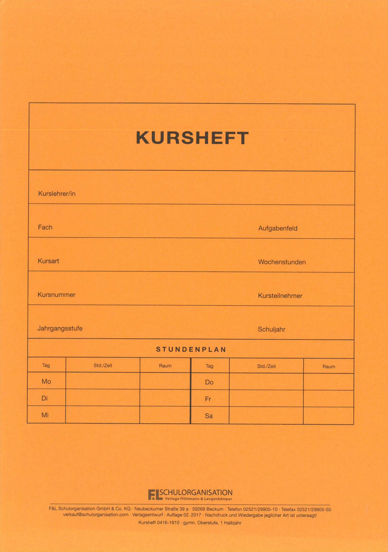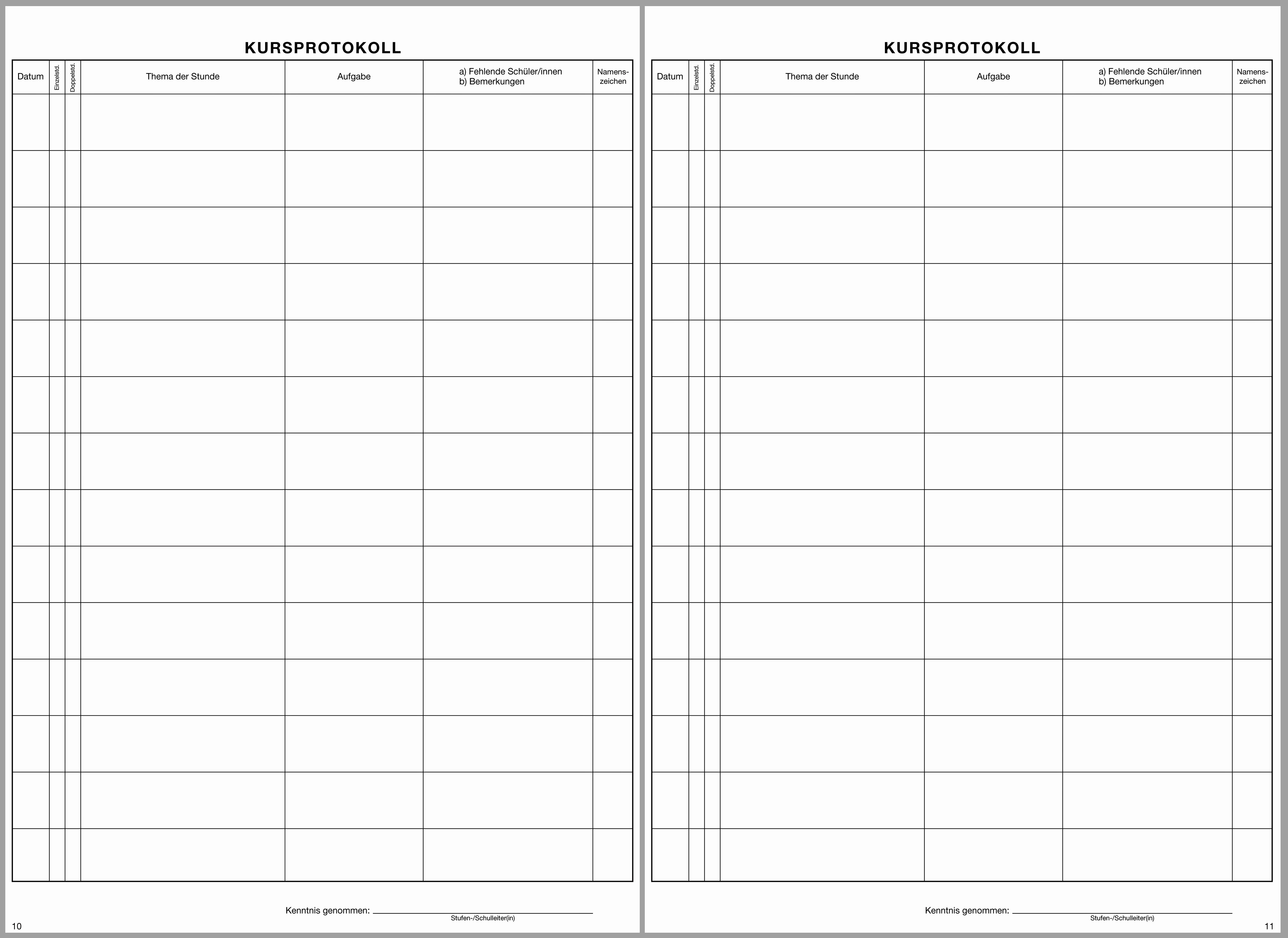 Kursheft speziell für die gymnasiale Oberstufe mit Ergebnislisten und Kursprotokollen