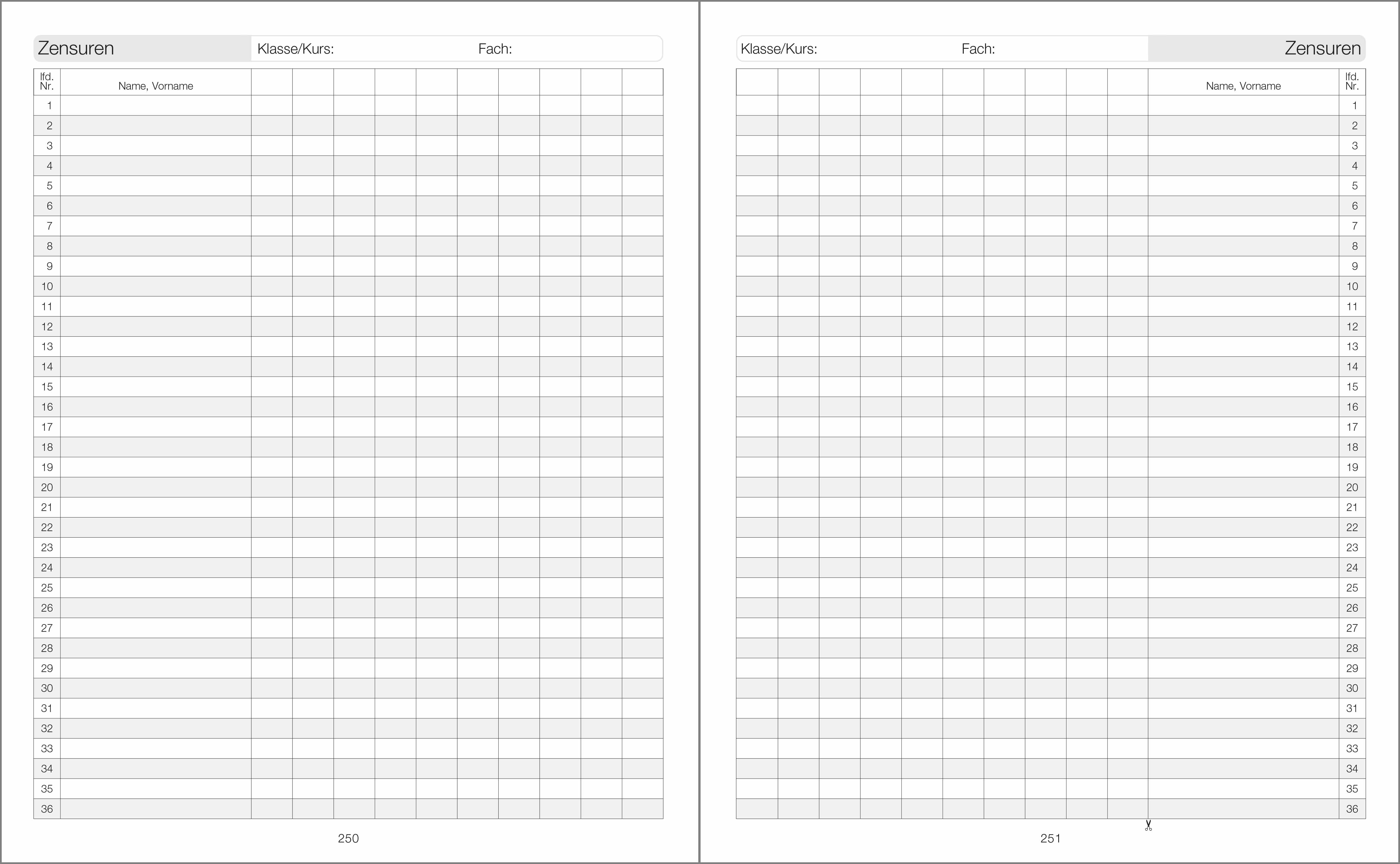 Zensurenheft für Fachlehrer/Innen für alle Klassenstufen, klassenweise.