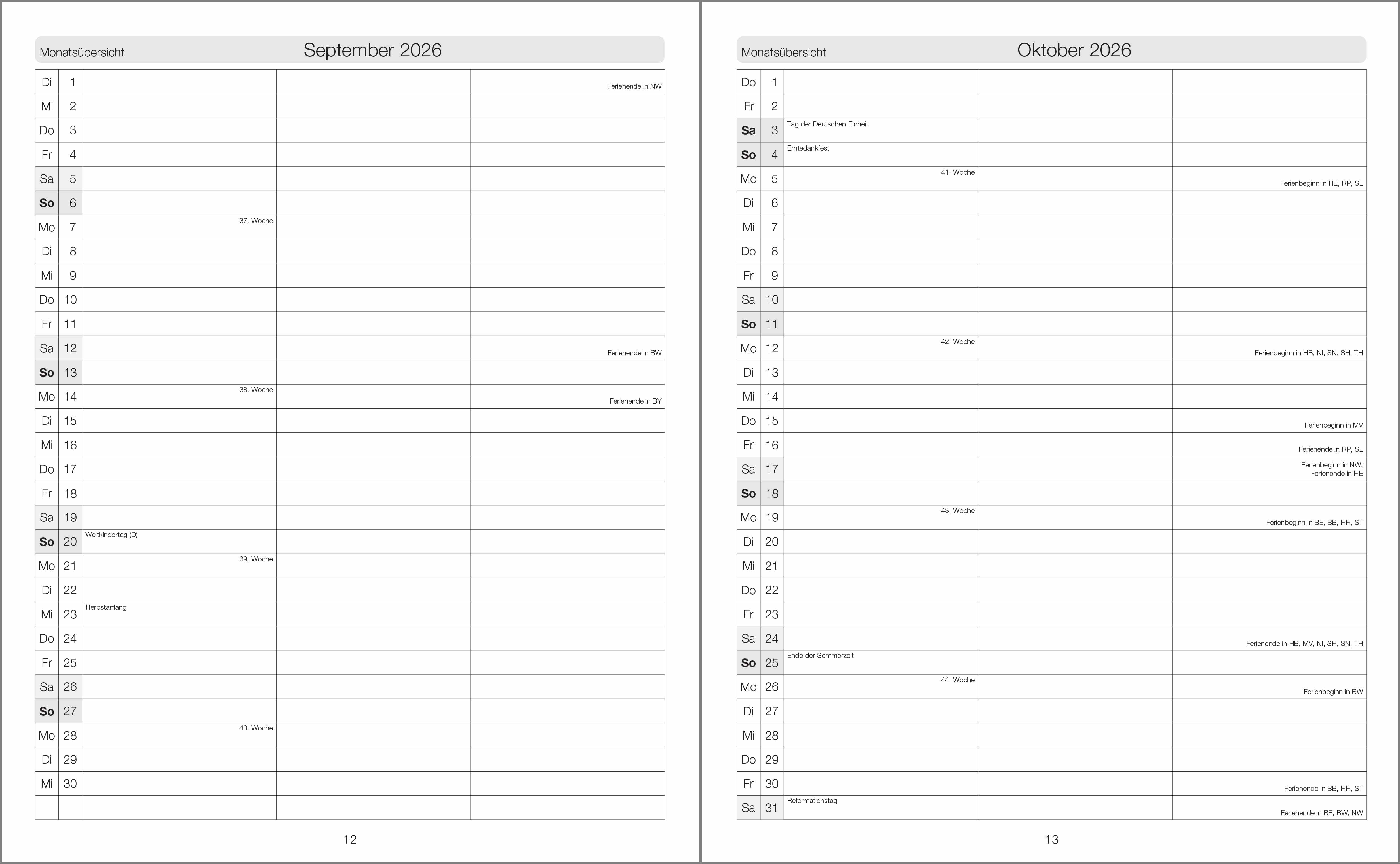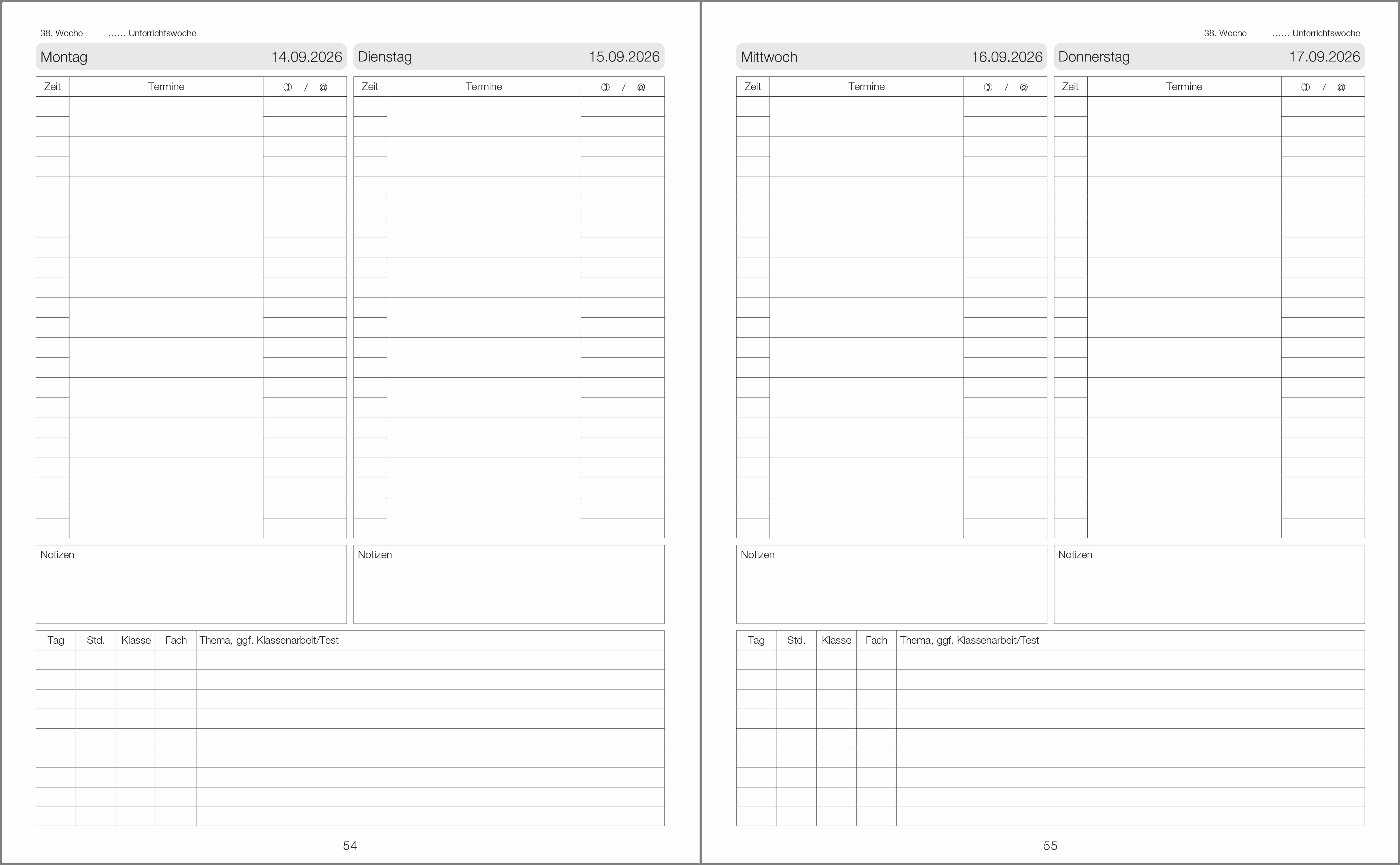 Ideal für Schulaufsicht, Schulleitung und Lehrkräfte mit erweiterten Aufgaben. Mit zwei Tagen je Seite ist das Platzangebot angemessen großzügig. Echt vielseitig und bewährt.
