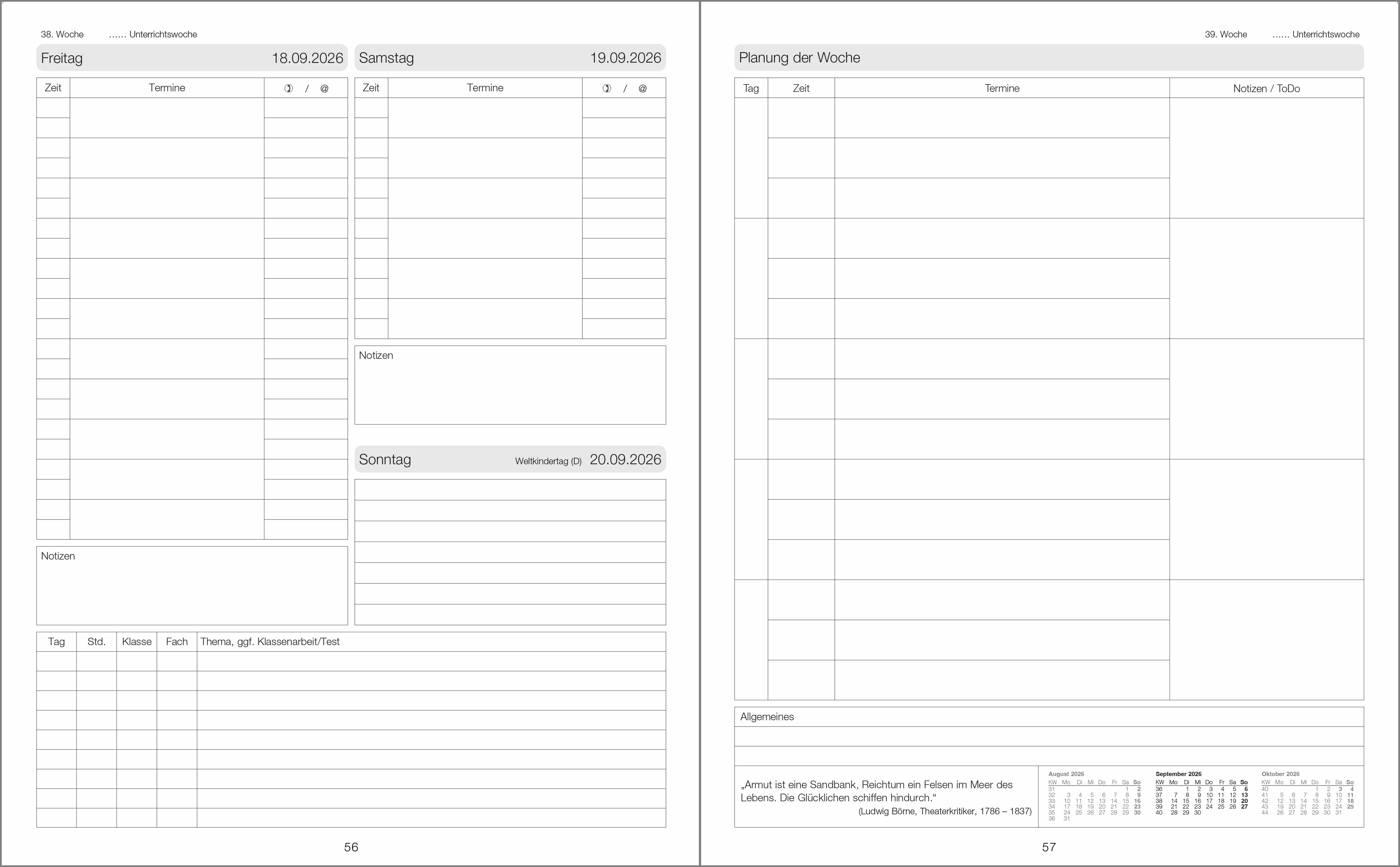 Lehrerkalender Schulleitungsplanungsbuch Ausgabe 2026/2027