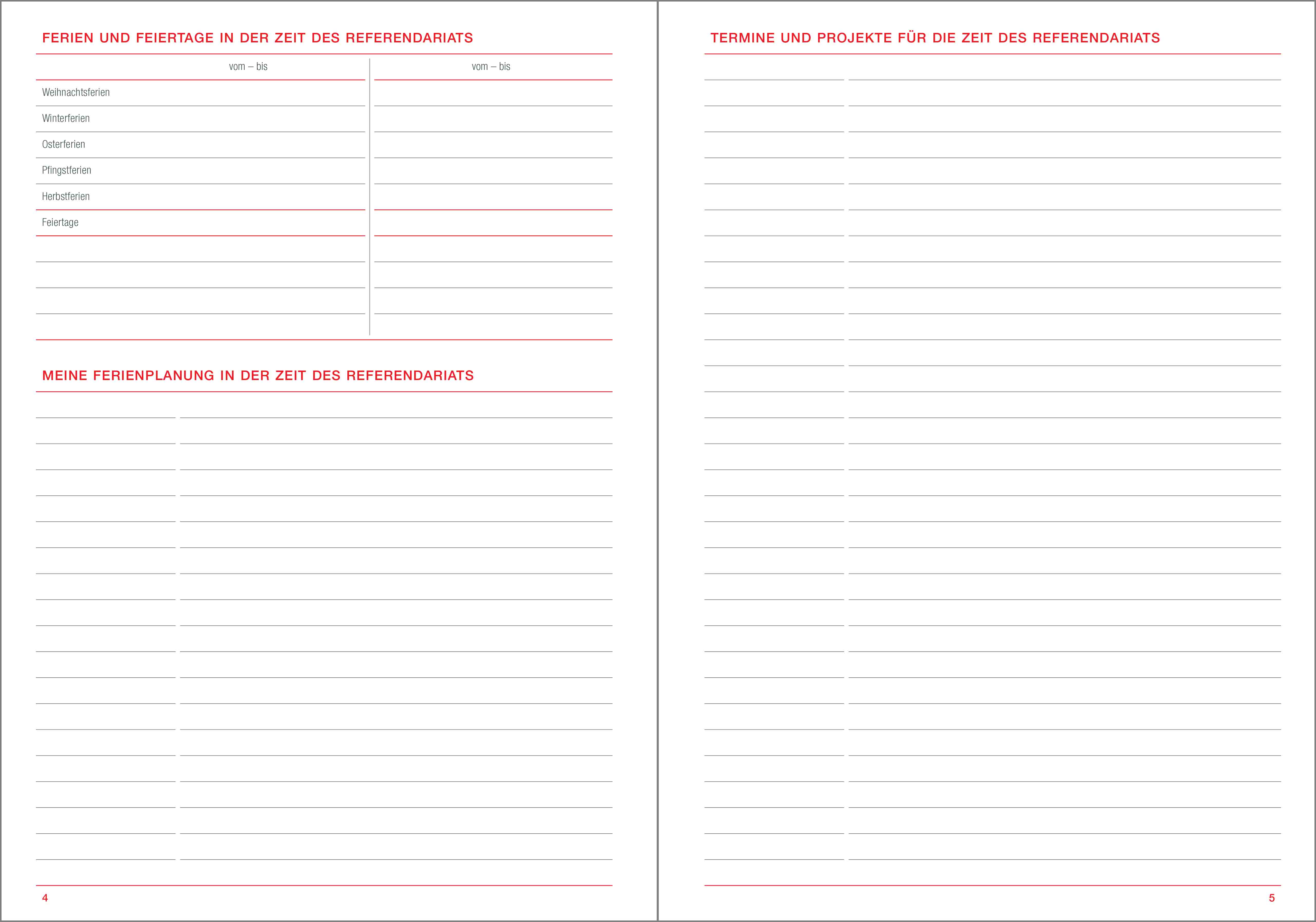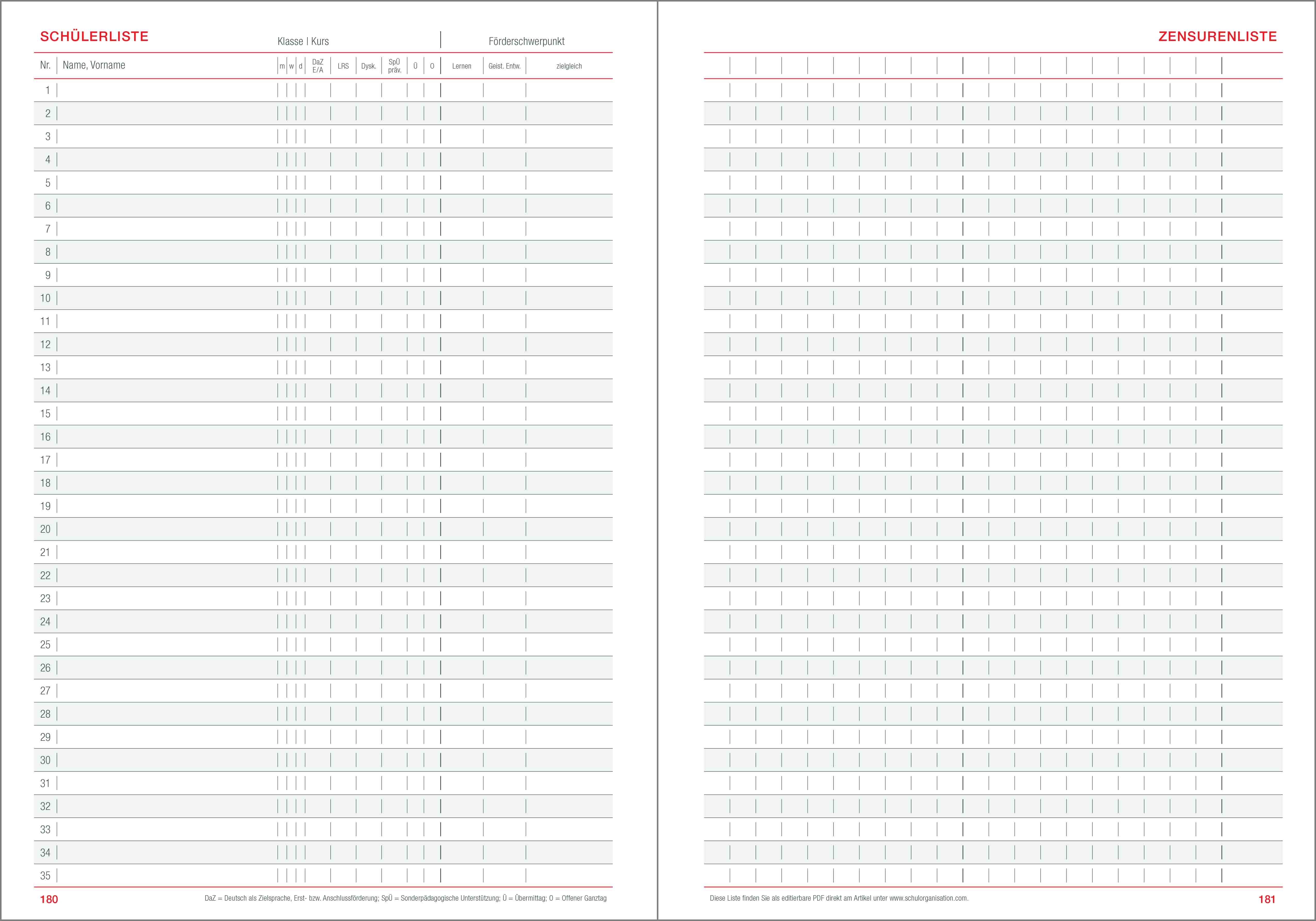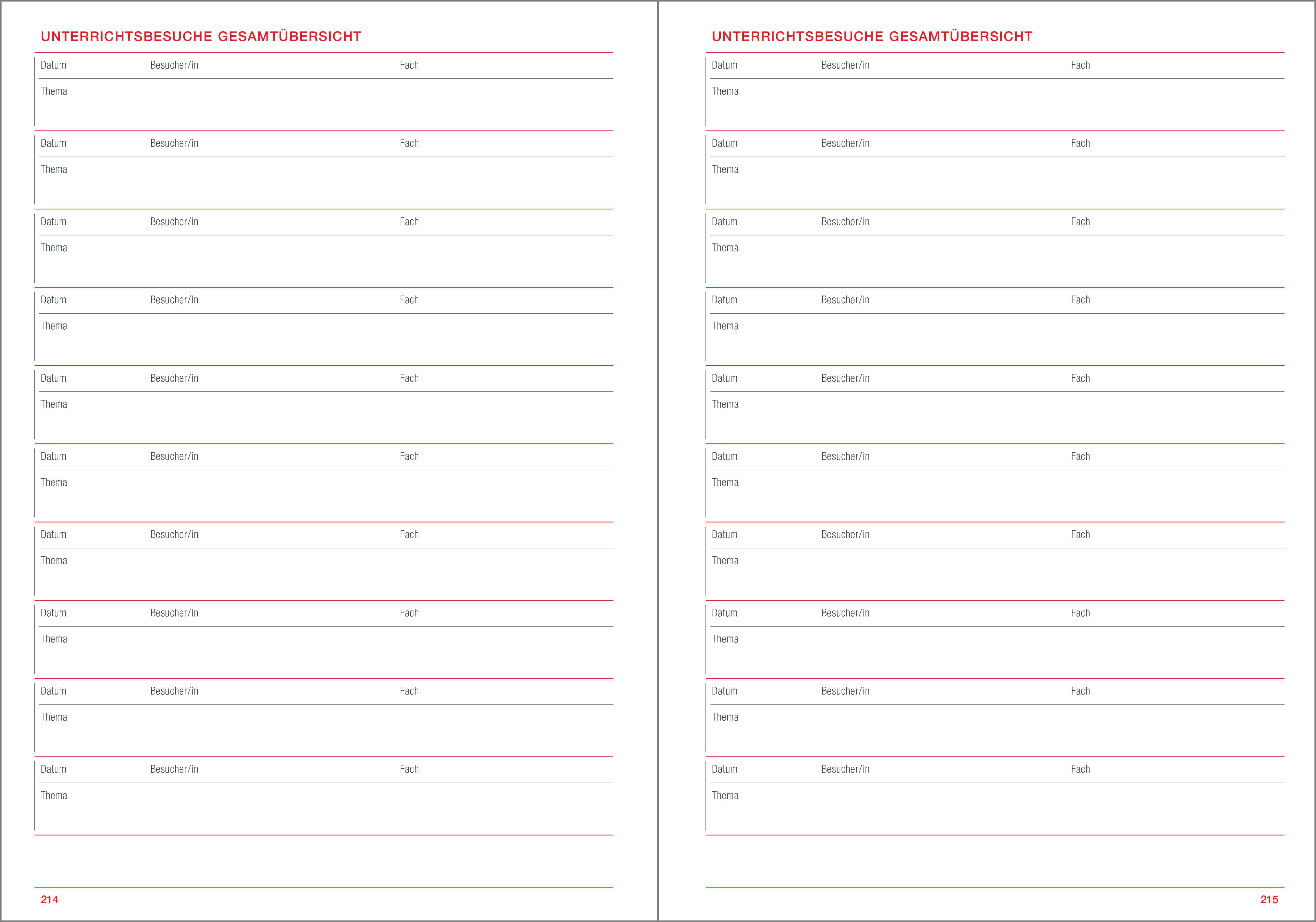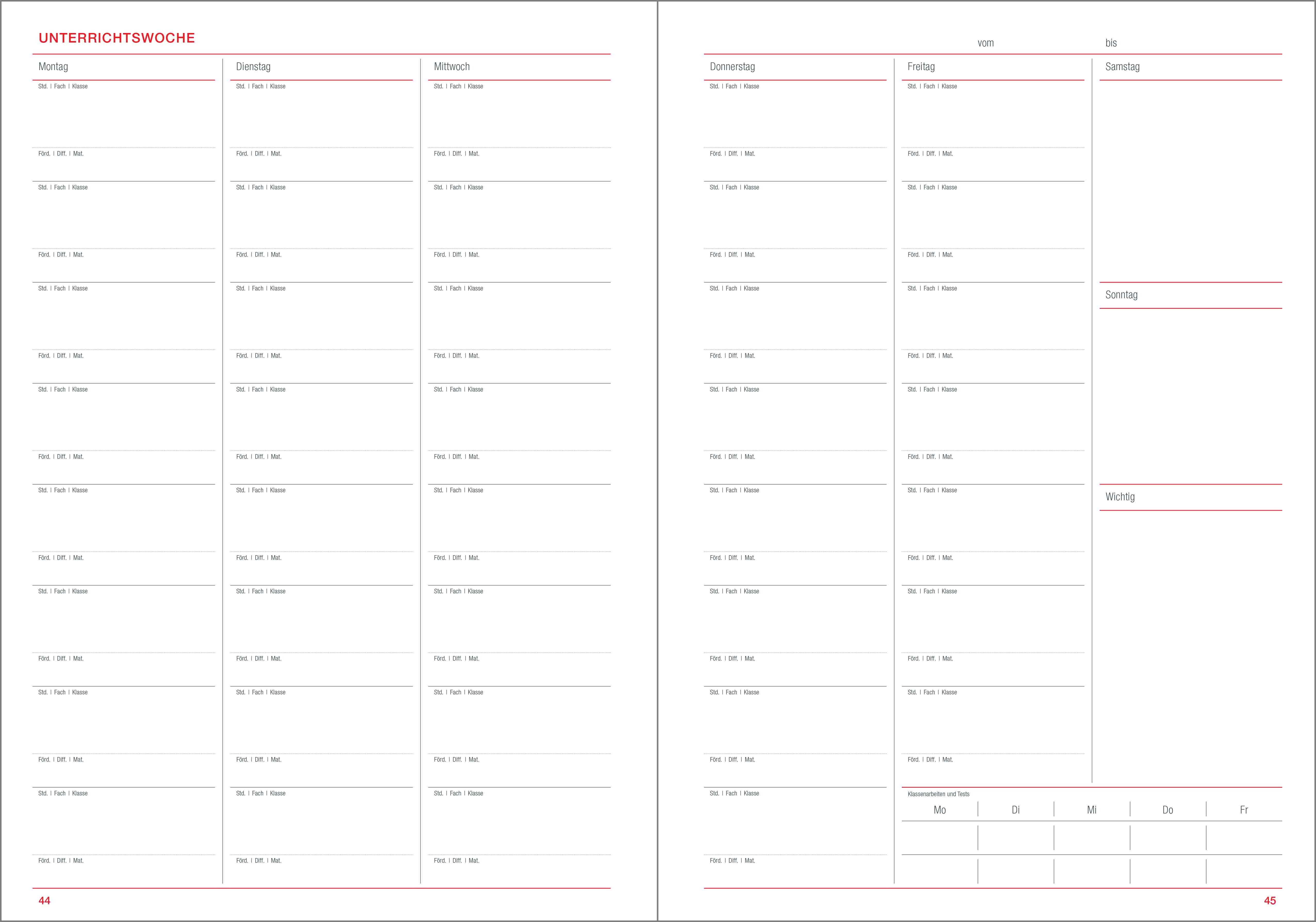 Hier kurz aus dem Inhalt: Termine und Projekte - Einleitung und Anleitung - Unterrichtskonzeption und Reihenplanung - Unterrichtswochen - Schülerlisten und Zensurenlisten - Besprechungen - Hospitationen - Unterrichtsbesuche - Notizen - Fortbildungen - und einiges mehr.