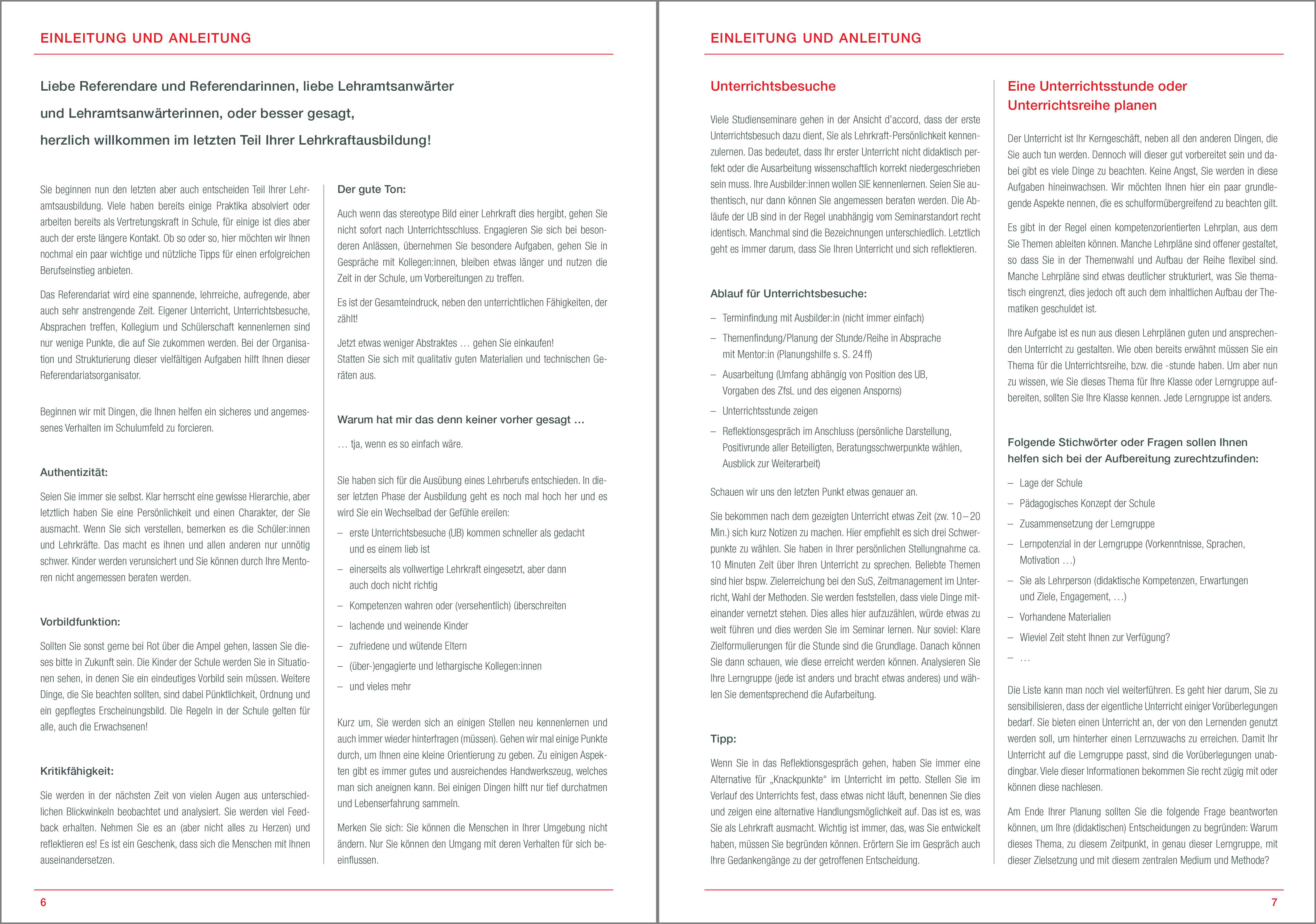 Wenn Sie nun im letzten und entscheidendsten Teil Ihrer Lehramtsausbildung angekommen sind, ist eine fundierte Hilfestellung und gute Organisation für diesen praktischen Teil wichtig. Dieses Planungsbuch ist also Ihr organisatorisches Rückgrat für die weiteren Monate Ihrer Lehramtsausbildung.
