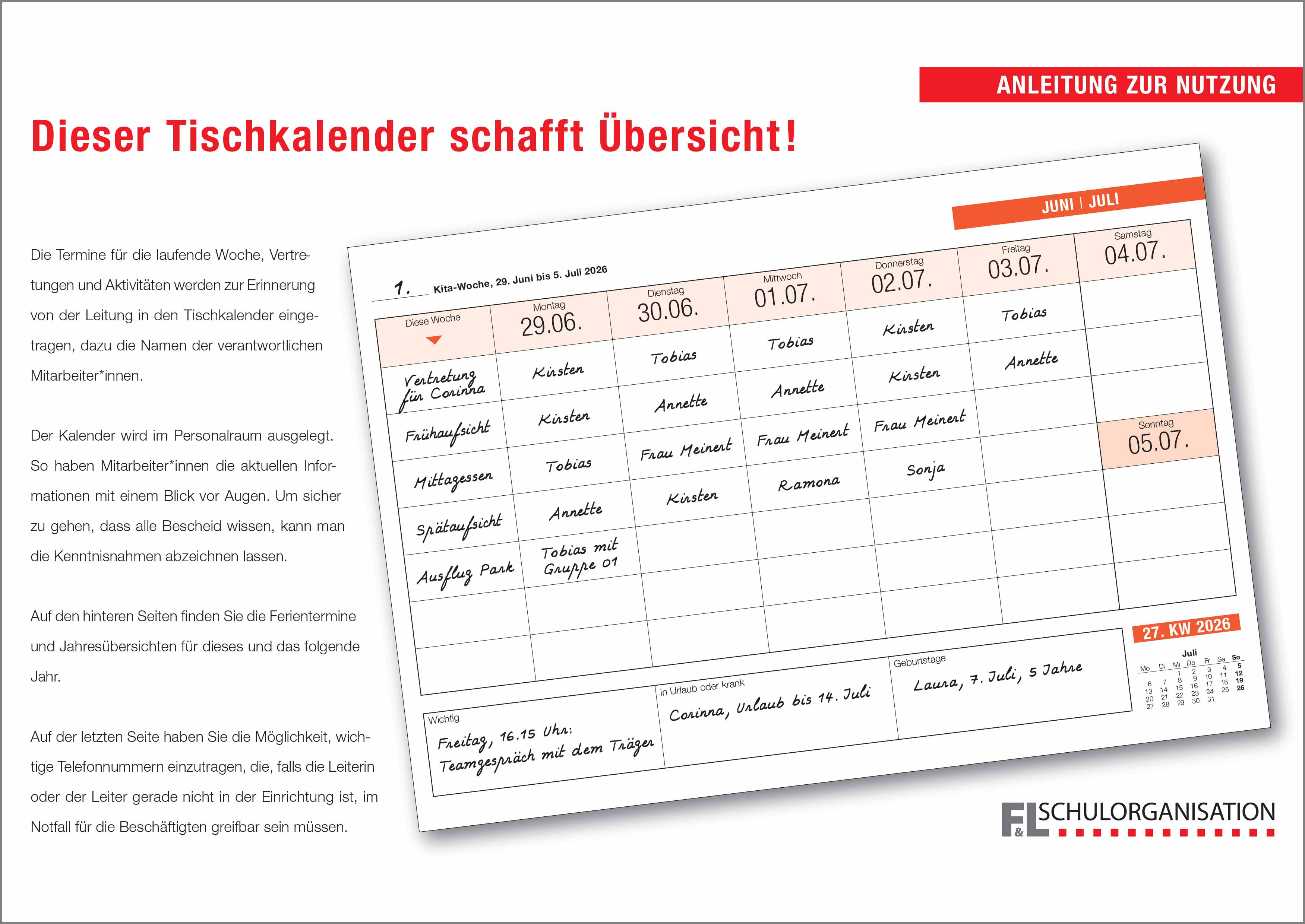 wird es Zeit für eine neue Organisationsstruktur. Dieser Tischkalender schafft Übersicht!
