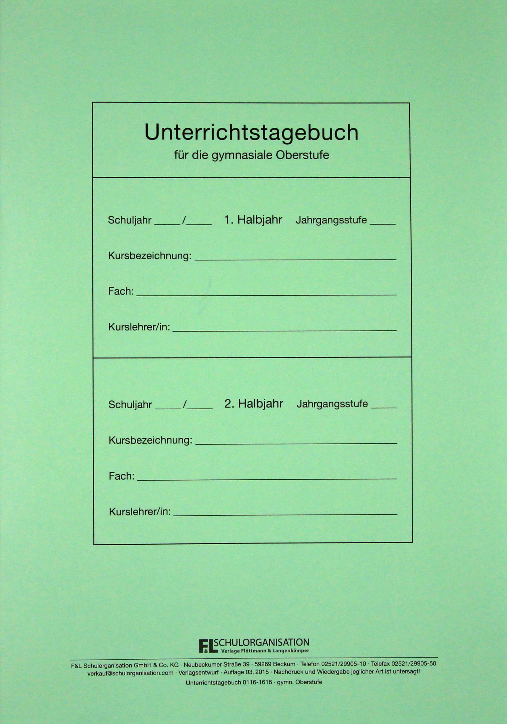 Unterrichtstagebuch für die gymnasiale Oberstufe in Schleswig-Holstein mit eingearbeiteter Ergebnis- und Versäumnisliste in einfacher Ausführung, für ein Schuljahr.