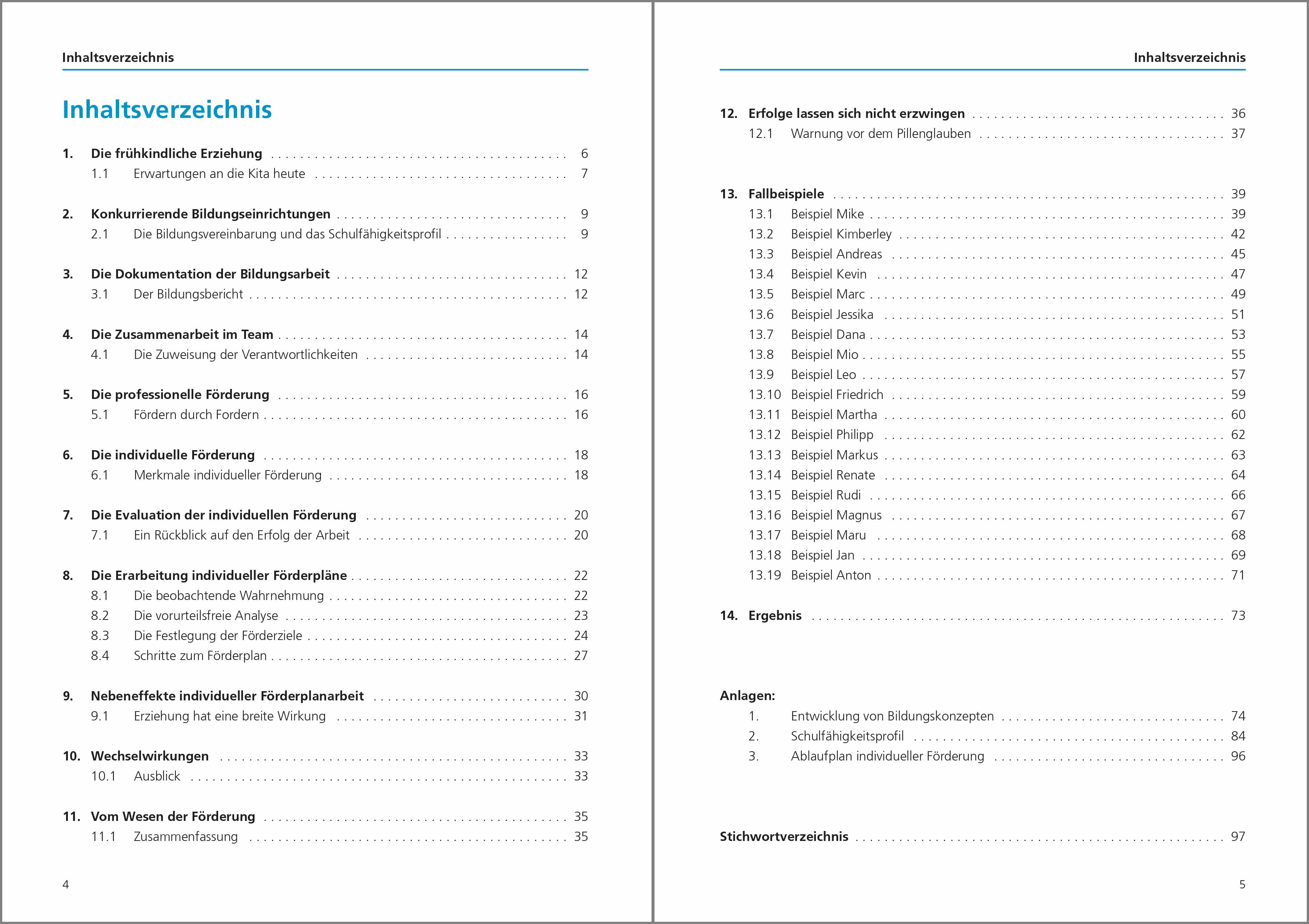 Person wird gefördert. Dann liegt eine individuelle Förderung vor. Der erste Teil dieses Buches behandelt allgemein Aussagen zur Förderung, der zweite Teil bechreibt Beispiele einer individuellen Förderung. Der Anhang enthält eine Übersicht über die Kompetenzbereiche, einen Ablaufplan, ein Stichwortverzeichnis.