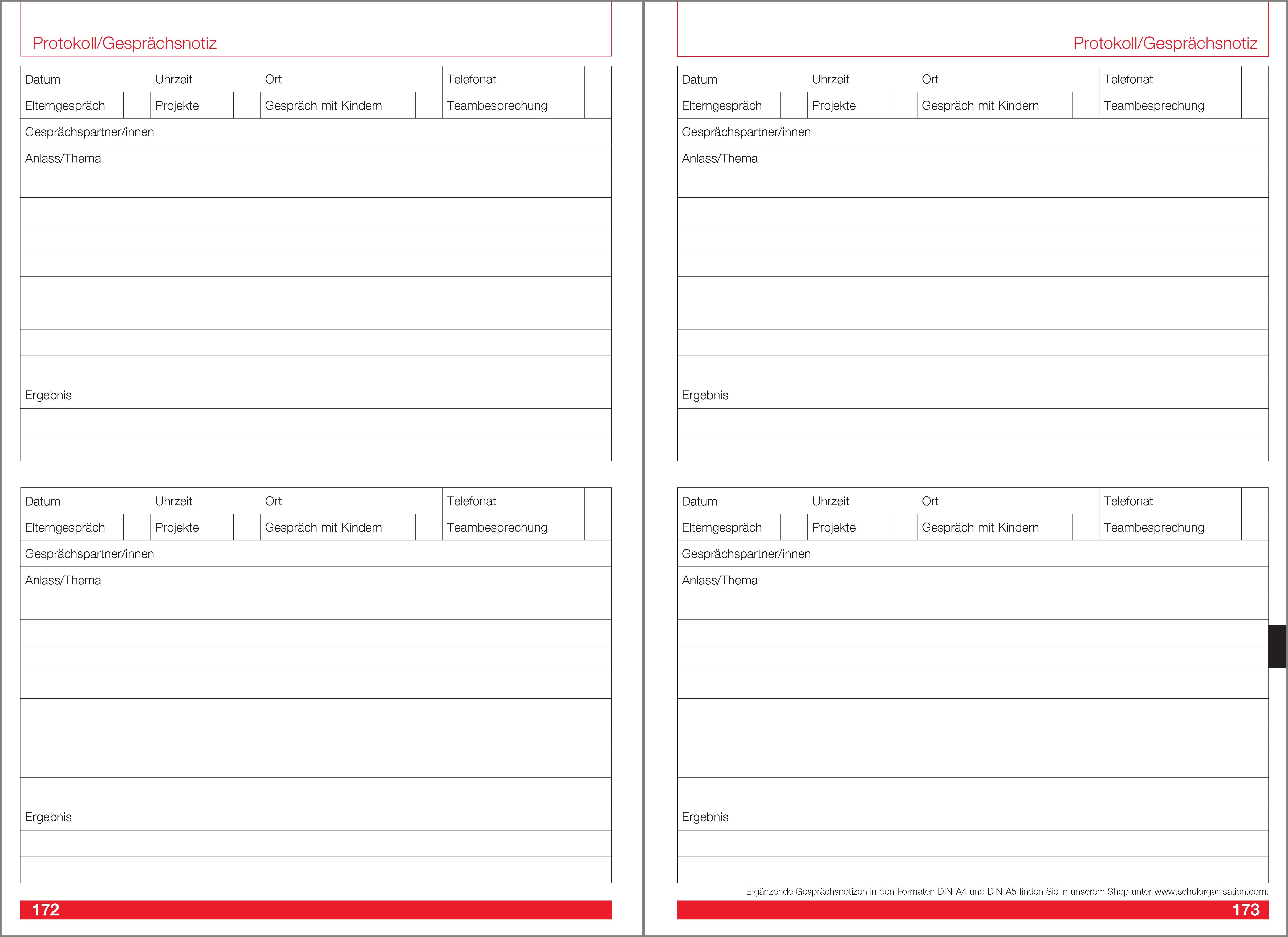 Seiten Gesprächsnotizen für bis zu 52 Protokolle (z.B. Teamsitzungen),