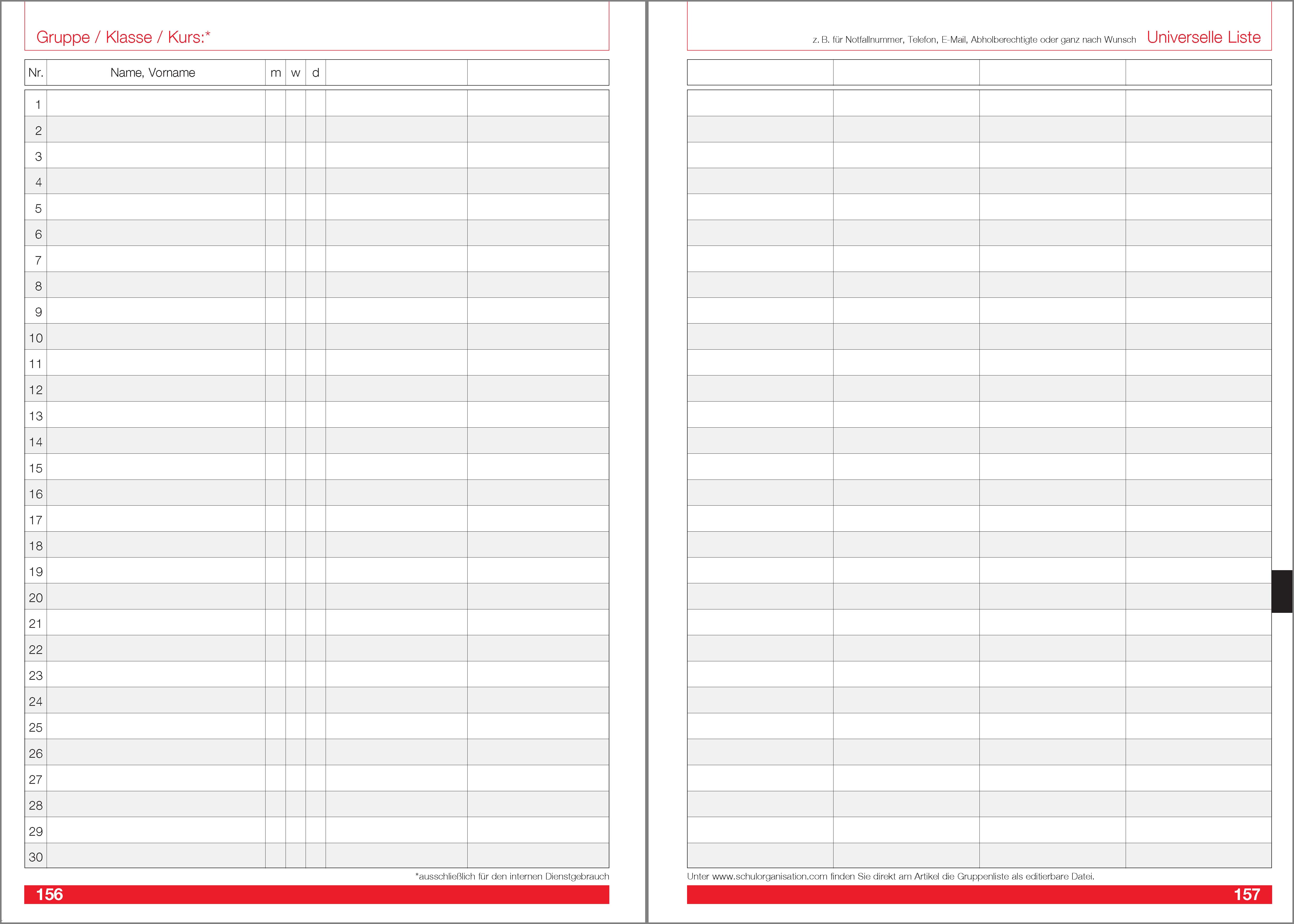 Universelle Gruppenlisten, für bis zu 8 Gruppen,