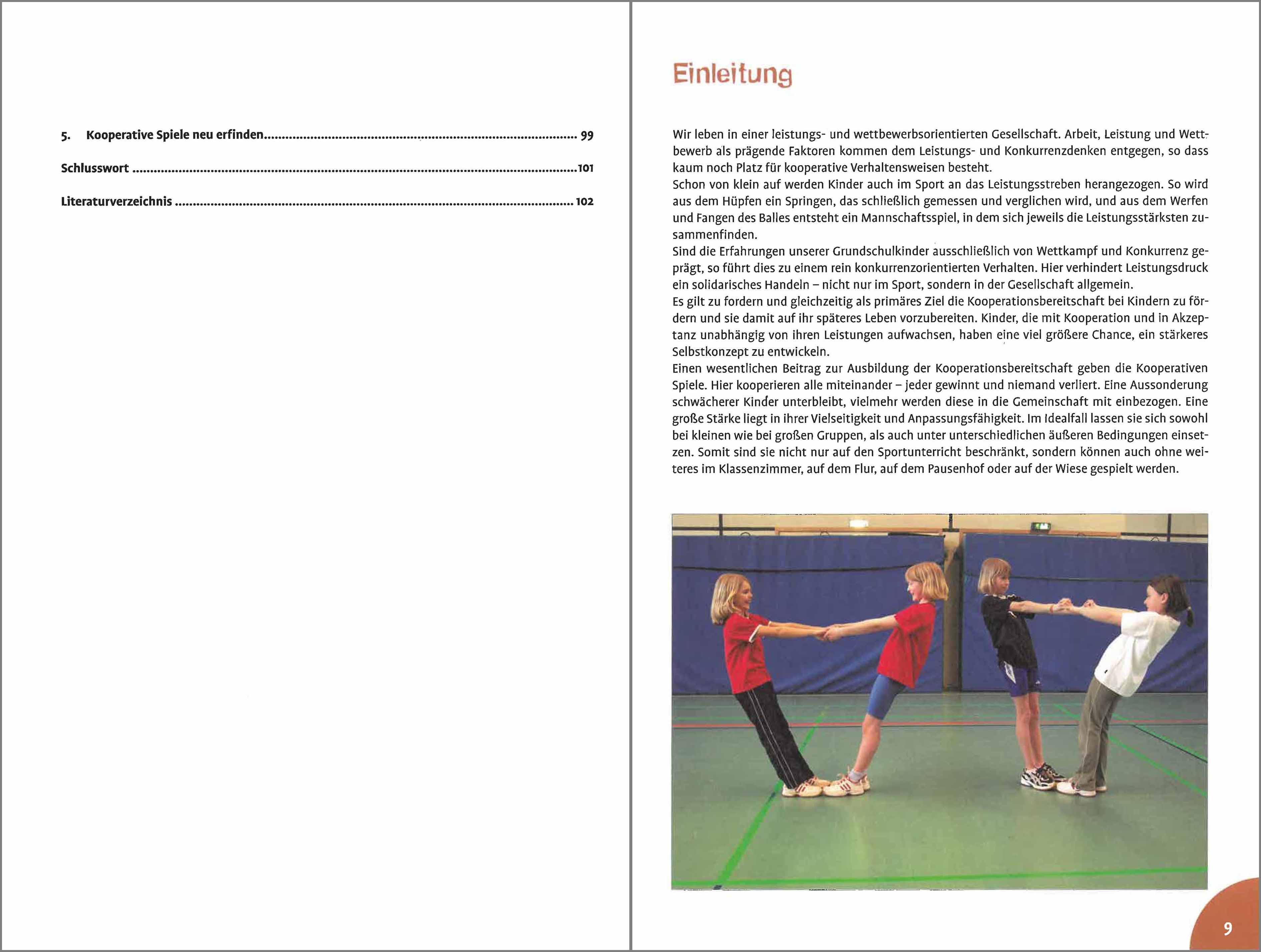 Bewegungsspiele sind ein wichtiger Baustein für die Entwicklung von Kindern und Jugendlichen. Doch vielfach sind bereits die Kinderspiele ausschließlich von Konkurrenz und Leistung geprägt. Sportlich schwächere Kinder fühlen sich hier schnell ausgegrenzt und in ihrem Selbstwertgefühl gemindert. Kooperative Spiele hingegen zeichnen sich dadurch aus, dass man gemeinsam und nicht gegeneinander spielt. Im Mittelpunkt steht das Kooperieren, d.h. die Bewegungsaufgaben können nur zusammen mit dem Partner oder in der Gruppe gelöst werden. So haben auch vermeintlich unsportliche Kinder Spaß und Freude am Sportunterricht.