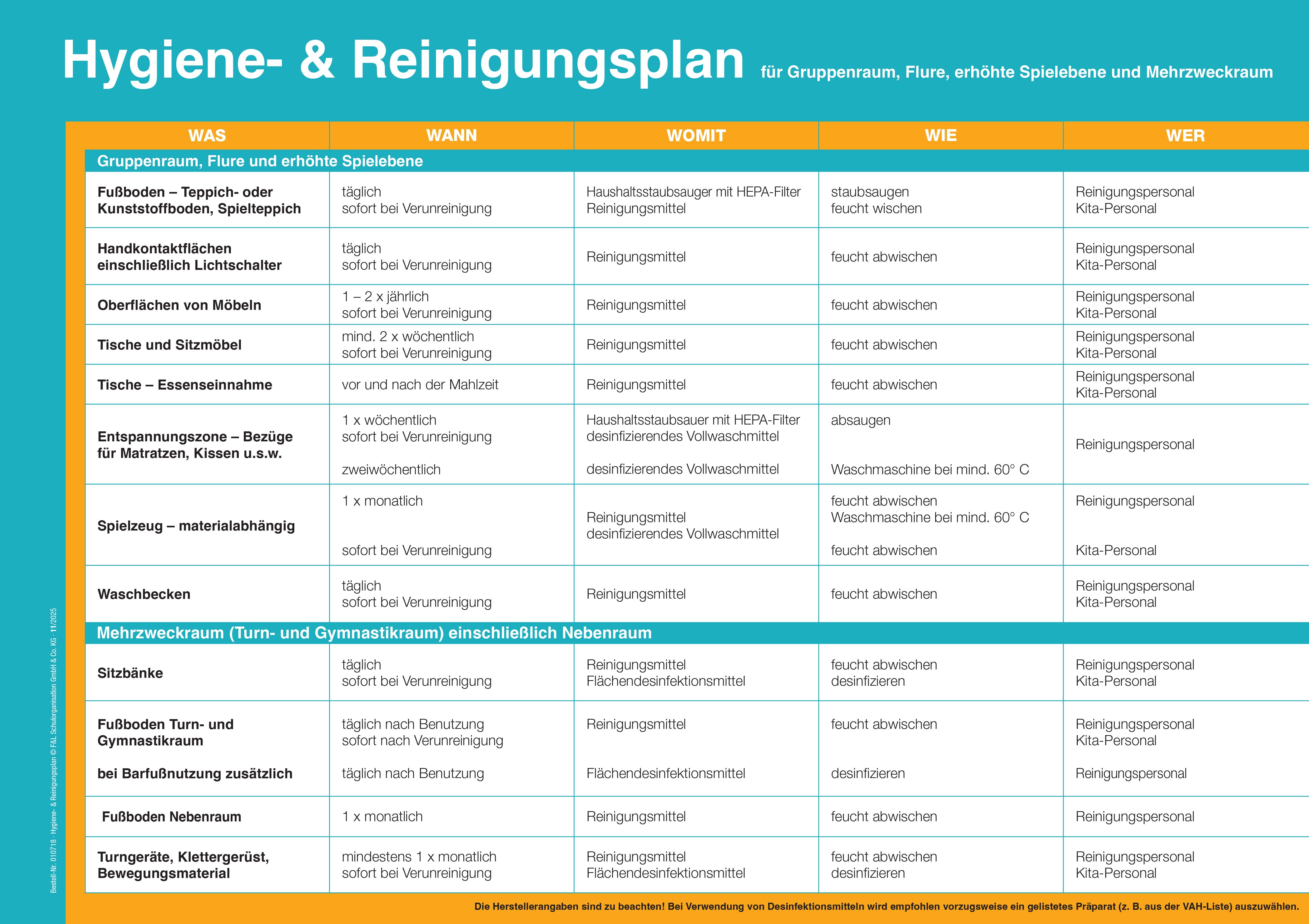 Produktinformationen "Hygiene u. Reinigungsplan für Gruppenräume , Turn-und Gymnastikräume"
