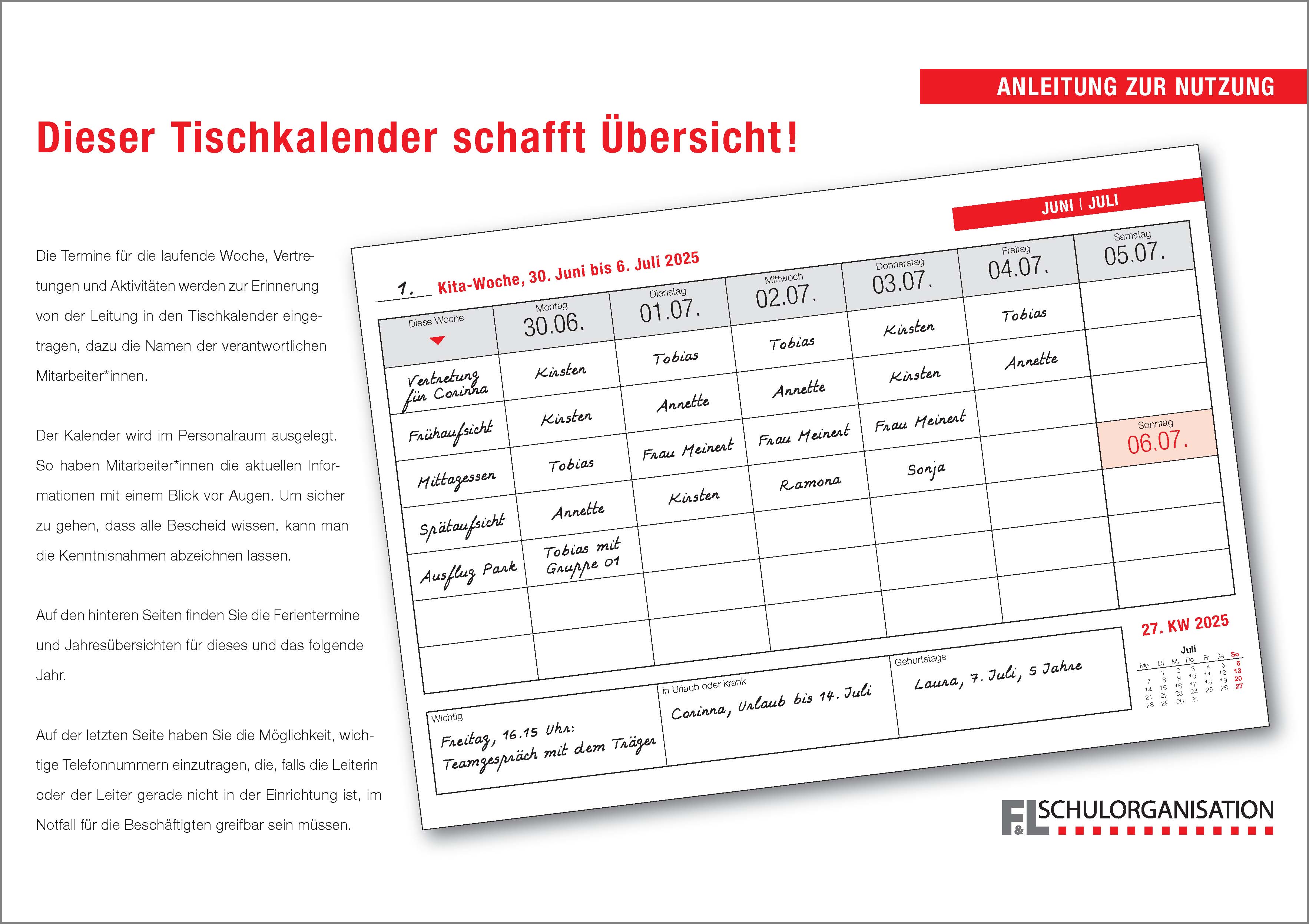 wird es Zeit für eine neue Organisationsstruktur. Der Tischkalender schafft Übersicht!