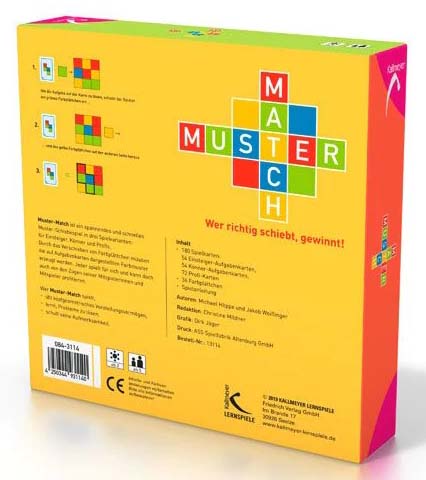 Muster-Match kann als Einsteiger-, Könner- oder Profi-Version gespielt werden. Die Varianten bauen nahtlos aufeinander auf. Zudem ist es möglich, das Spiel für die jüngsten Spieler und Spielerinnen auch in einer kooperativen Variante zu spielen: