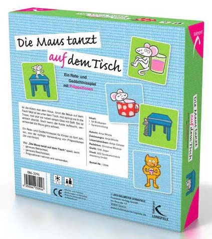 Kaum ist die Katze aus dem Haus, tanzt die Maus auf dem Tisch! Mal sitzt sie unter dem Tisch, mal springt sie in die Tasse, mal steht sie rechts neben einem Glas mit Saft. Reihum wird eine Bildkarte beschrieben und in einer Auswahl von Karten gesucht. Nach und nach gibt der Tippgeber immer mehr Hinweise. Die Mitspieler müssen immer aufmerksam sein, genau hinschauen und gut zuhören. Denn wer die richtige Karte aufdeckt, kann sie behalten. Ein unterhaltsames Spiel, das die richtige Verwendung von Präpositionen übt und fördert, mit kleinen Unterrichtsideen, die Kinder beim Erlernen und Nutzen von Präpositionen spielerisch unterstützen, auch gut einsetzbar im Förder- und DaZ-Unterricht. Das Spiel kommt ohne schriftsprachliches Material aus und ist daher vielfältig einsetzbar – neben Deutsch auch in allen Fremdsprachen!