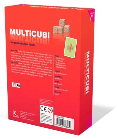 MULTICUBI fördert das räumliche Vorstellungsvermögen von Kindern im Vor- und Grundschulalter. Beim Errichten eines Würfelgebäudes auf dem Spiegel müssen die Kinder die Anordnung der Würfel mit der Spielkarte überprüfen und die Anzahl der Würfel gedanklich verdoppeln oder halbieren.
