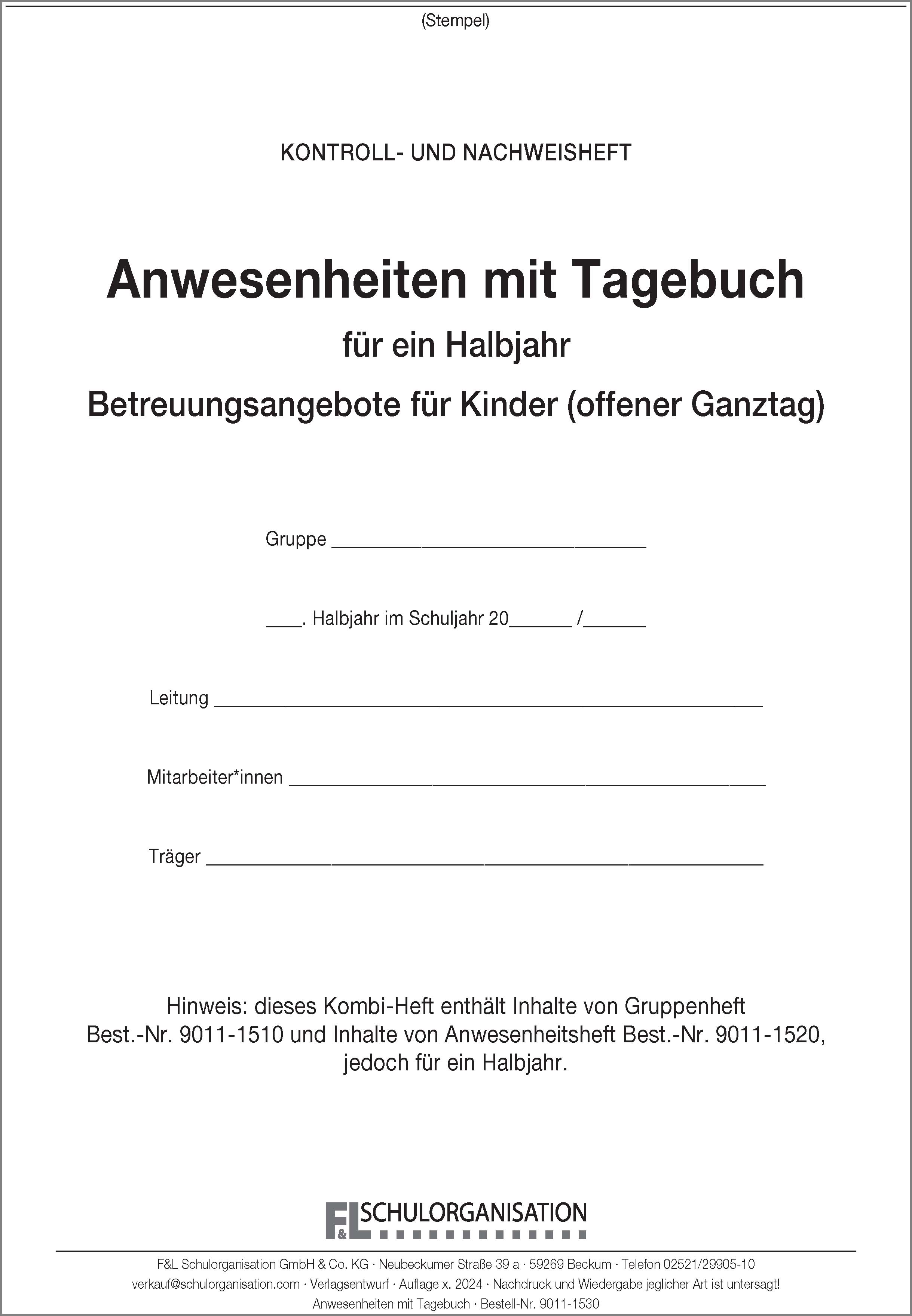 Beide Funktionen sind also in einem Heft übersichtlich vereint, jedoch für ein Halbjahr. Für den offenen Ganztag und andere Einrichtungen.