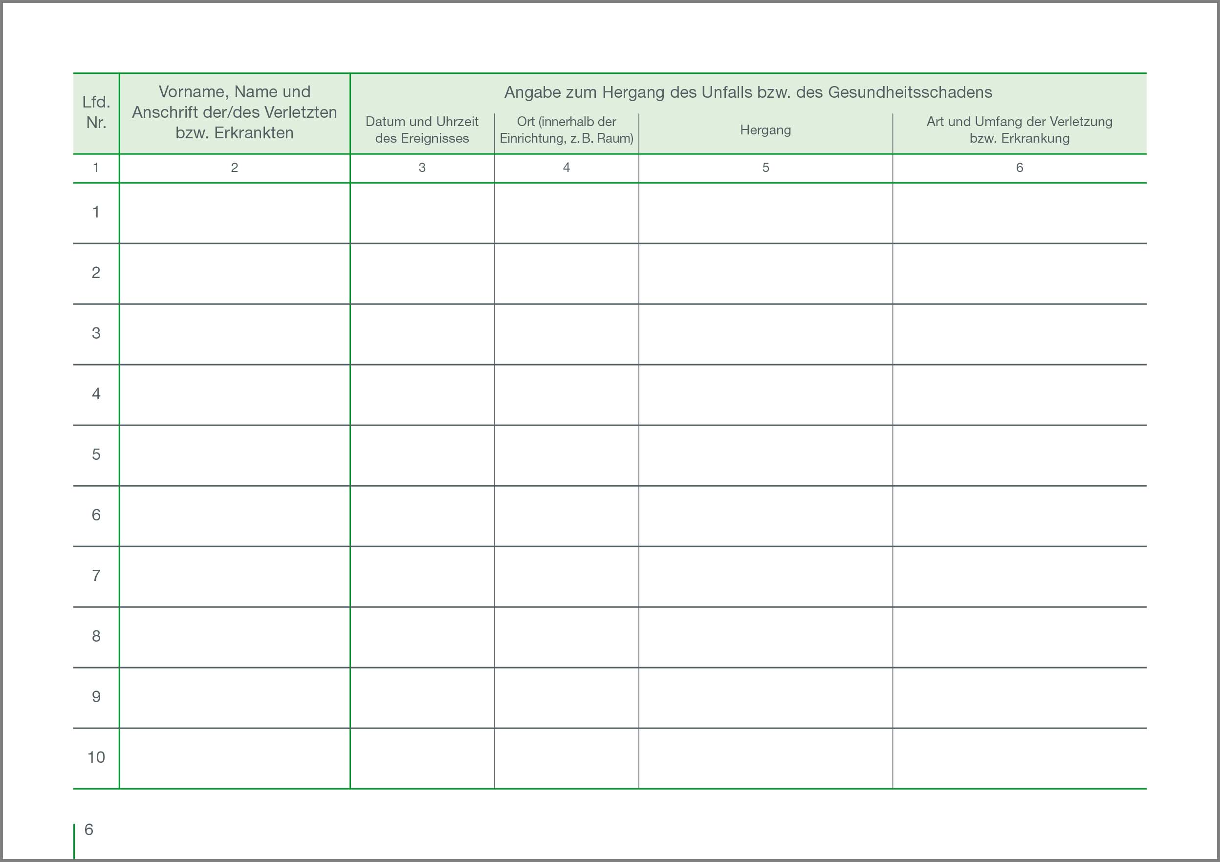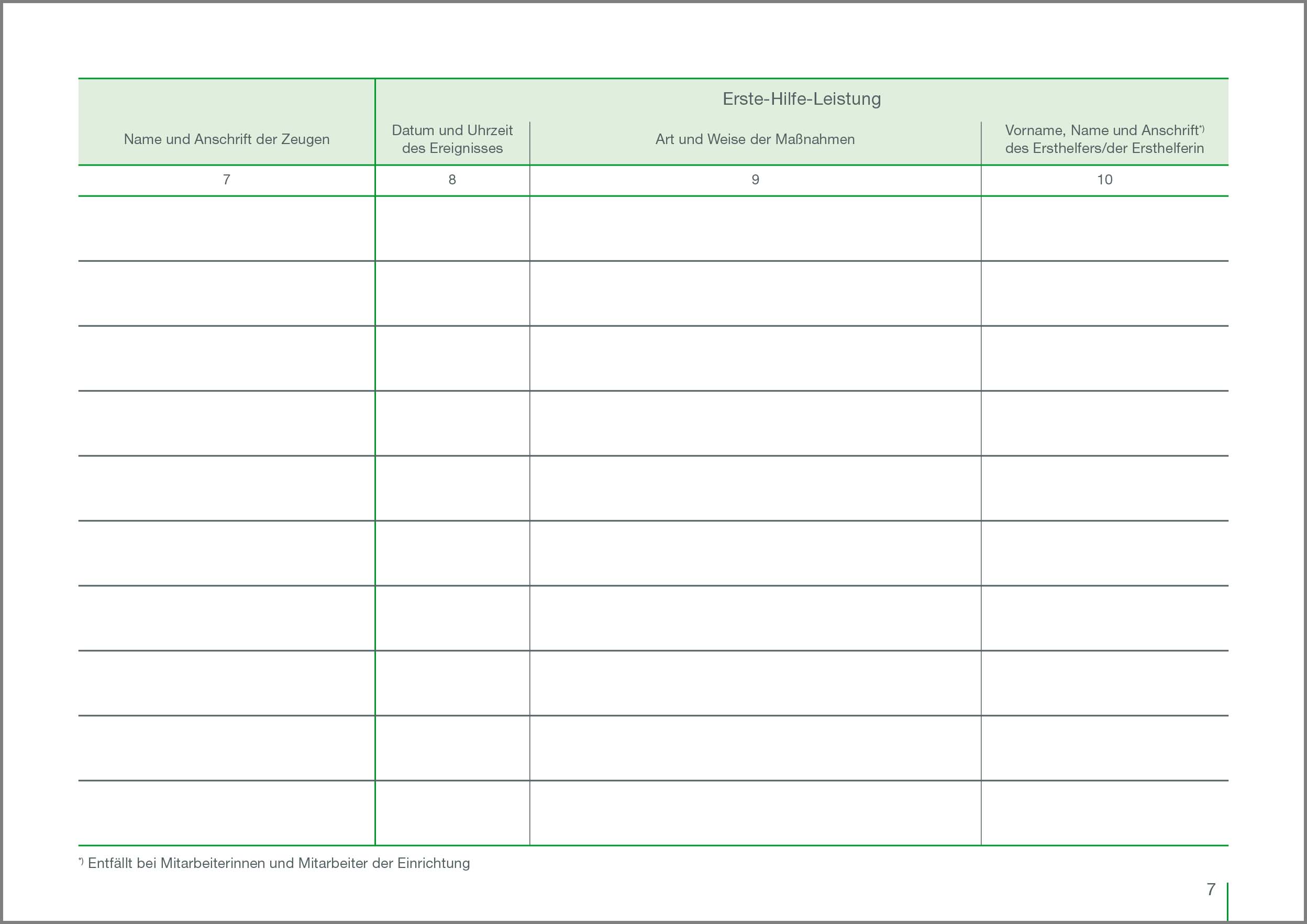 Die Speicherung der Daten steht im Einklang mit allen datenschutzrechtlichen Bestimmungen. Alternativ kann Bestell-Nr. 000117, Erste-Hilfe-Meldeblock, genutzt werden.