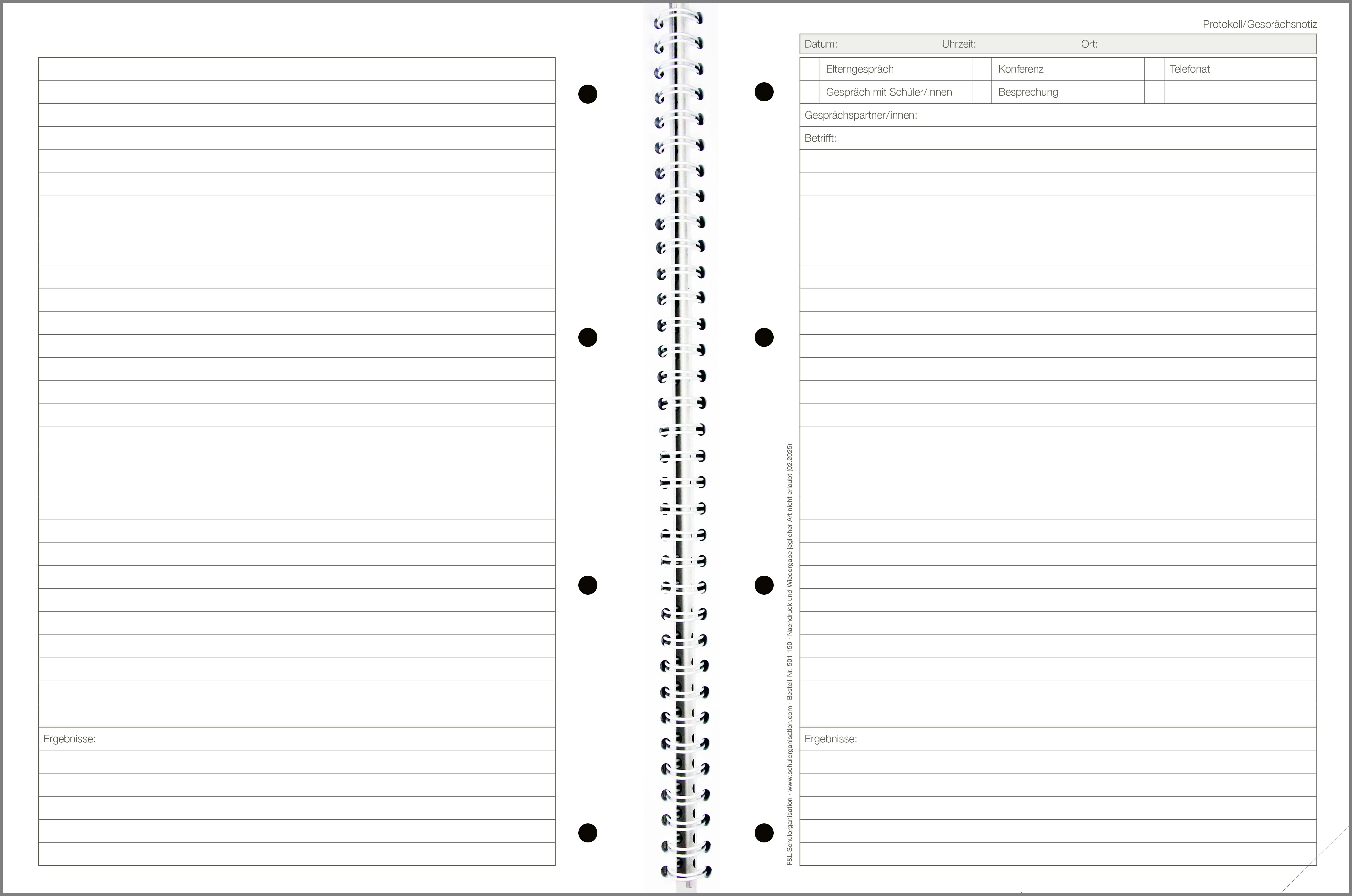 wichtigen Ergebnisse von Gesprächen, Besprechungen und Telefonate. Die Seiten sind für