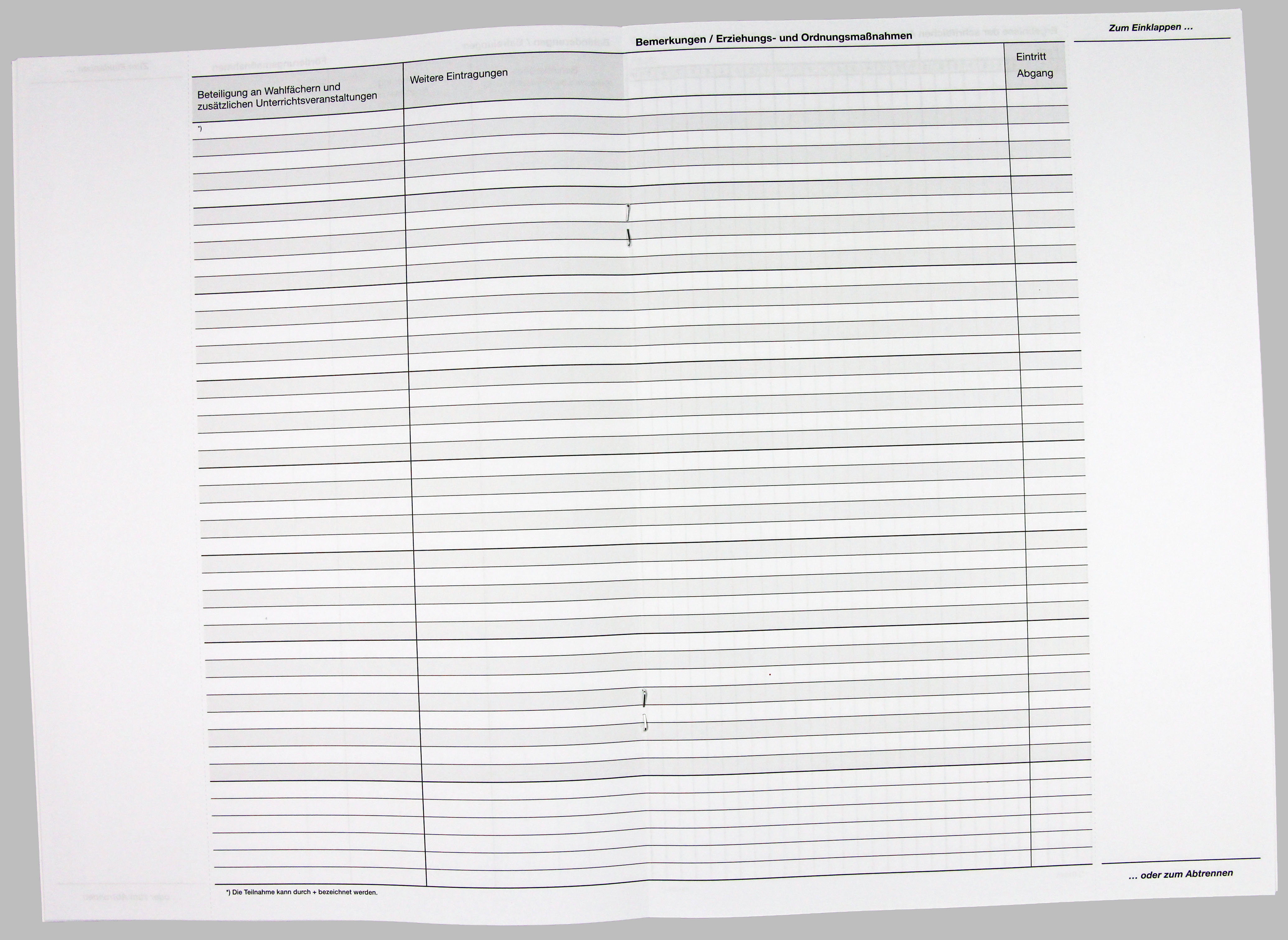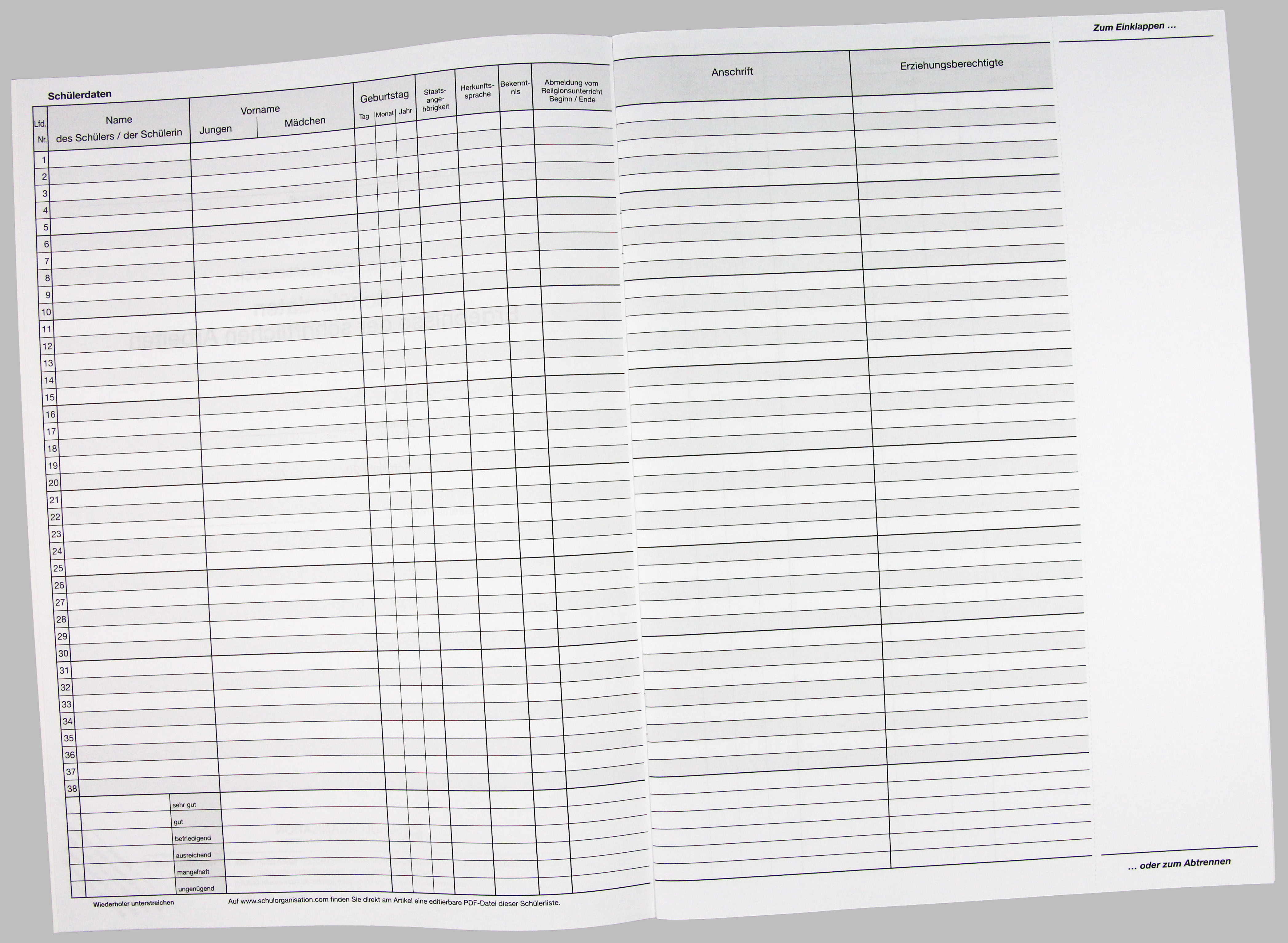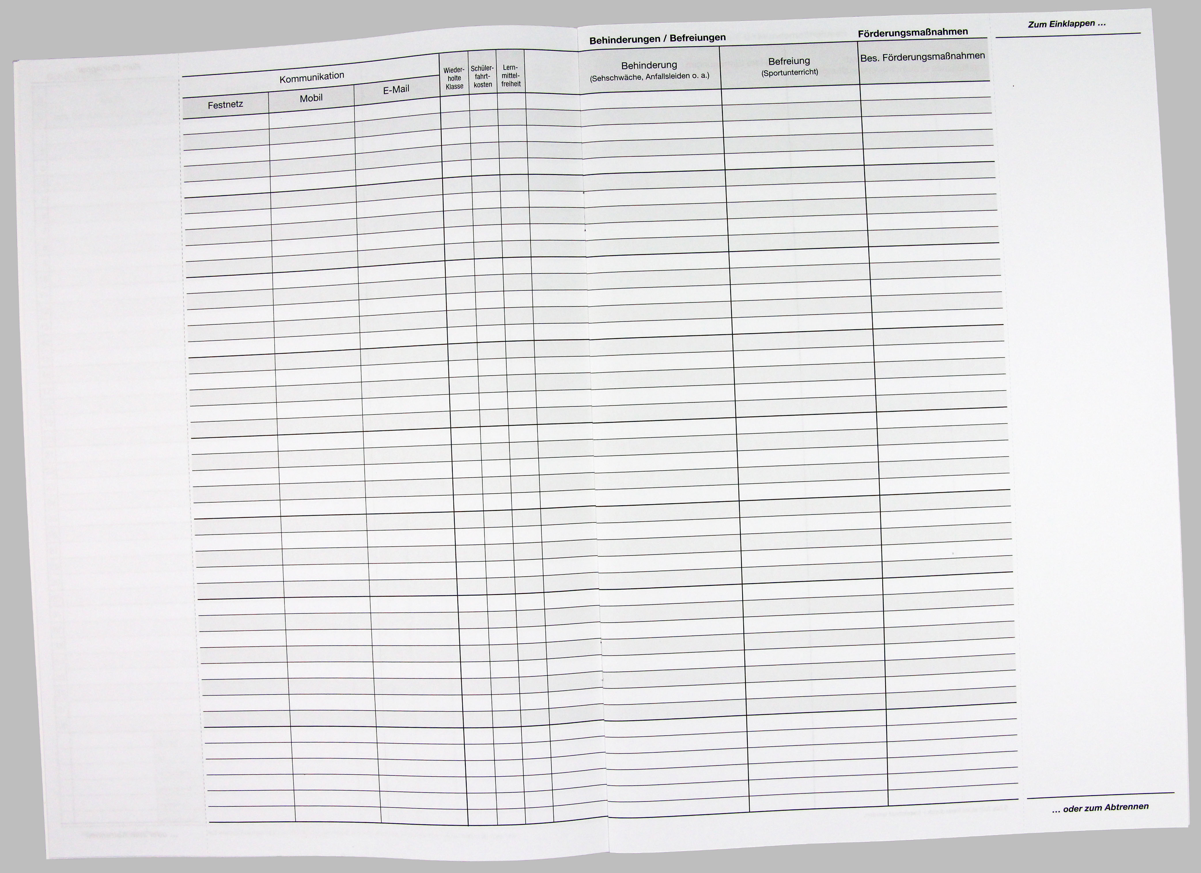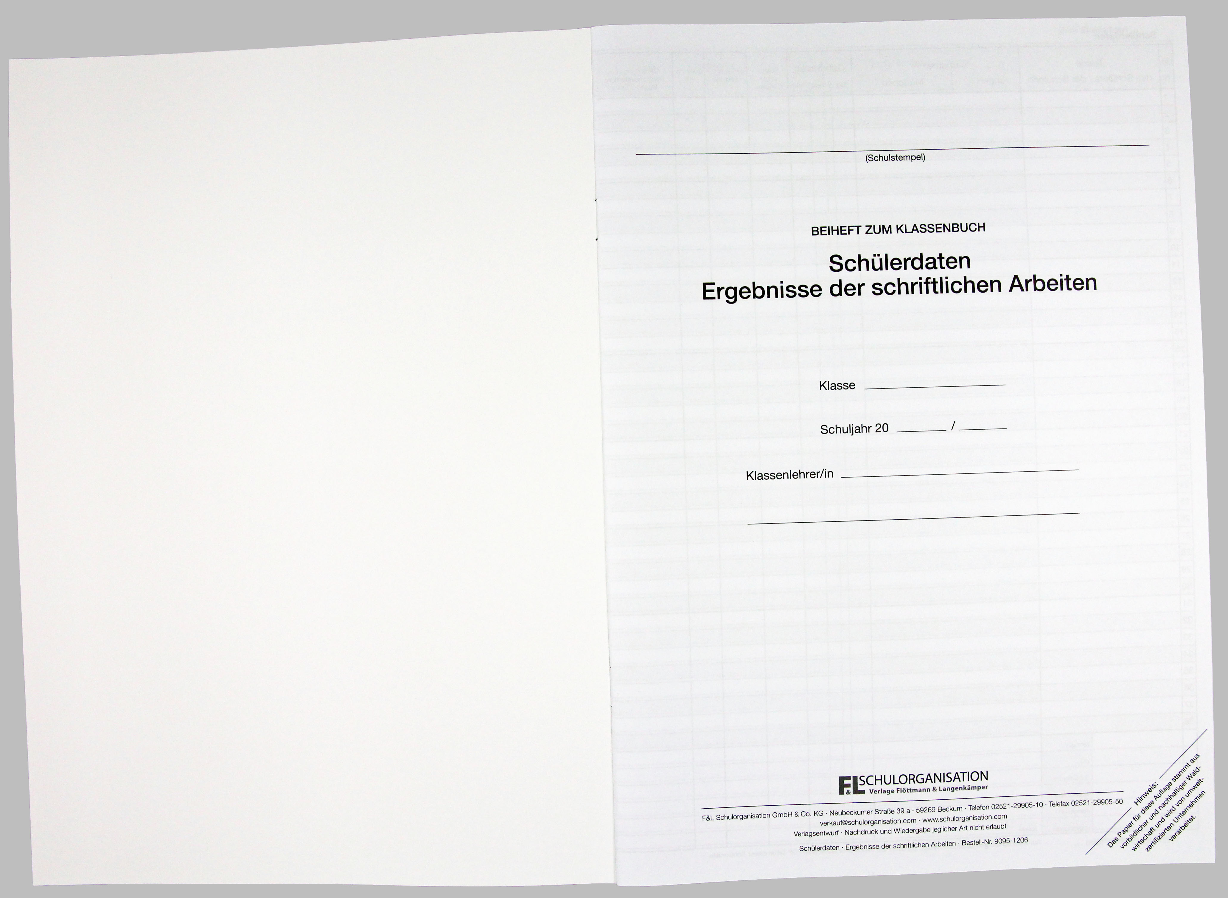 Beiheft zum Klassenbuch zum Eintragen der Schülerdaten und der Ergebnisse der