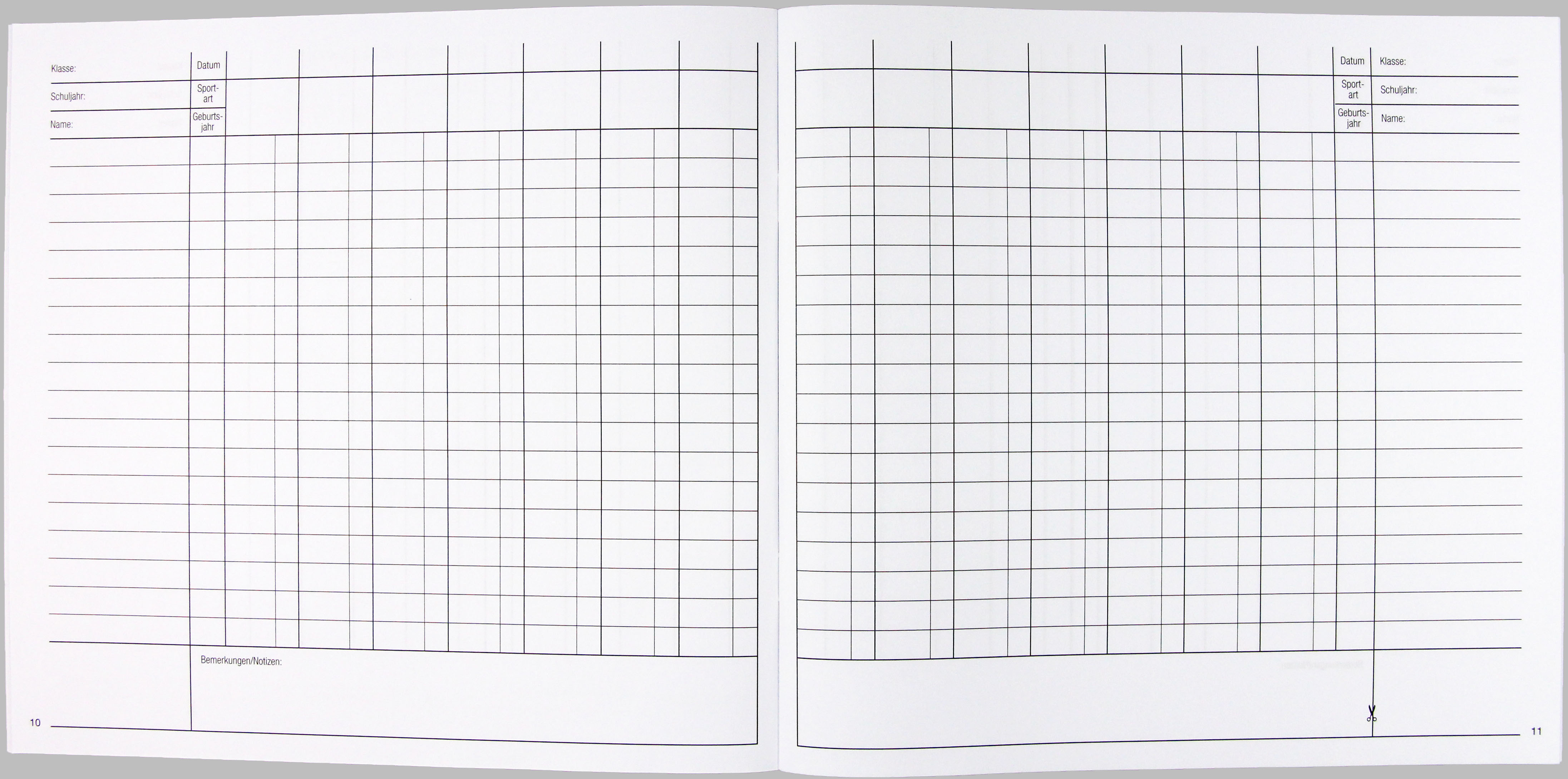 für alle Sportarten einzutragen. Es kann pro Halbjahr für verschiedene Klassen / Kurse oder für eine Klasse /