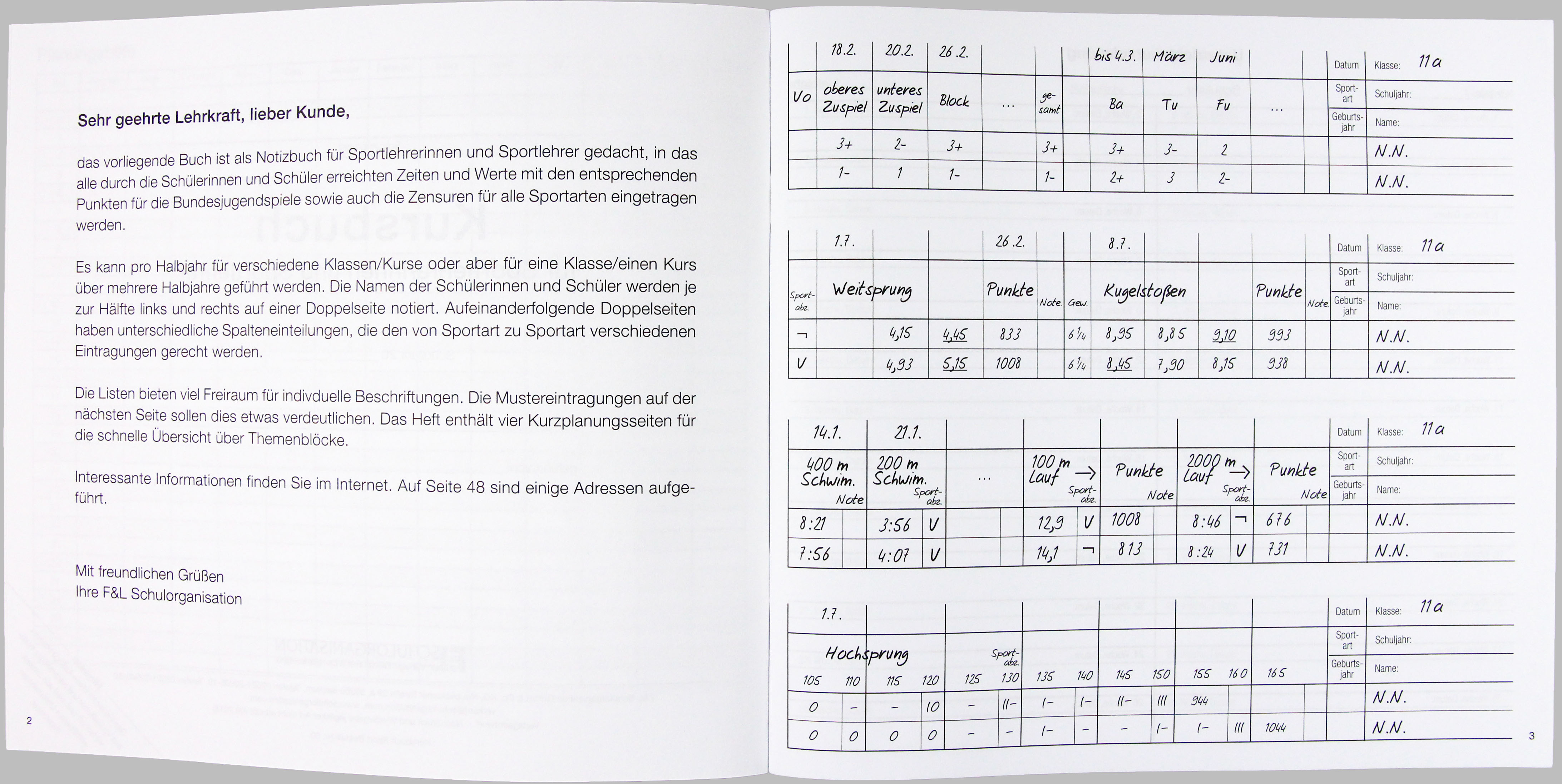 Dieses Kursbuch hilft Sportlehrerinnen und Sportlehrern, die erreichten Zeiten und Werte