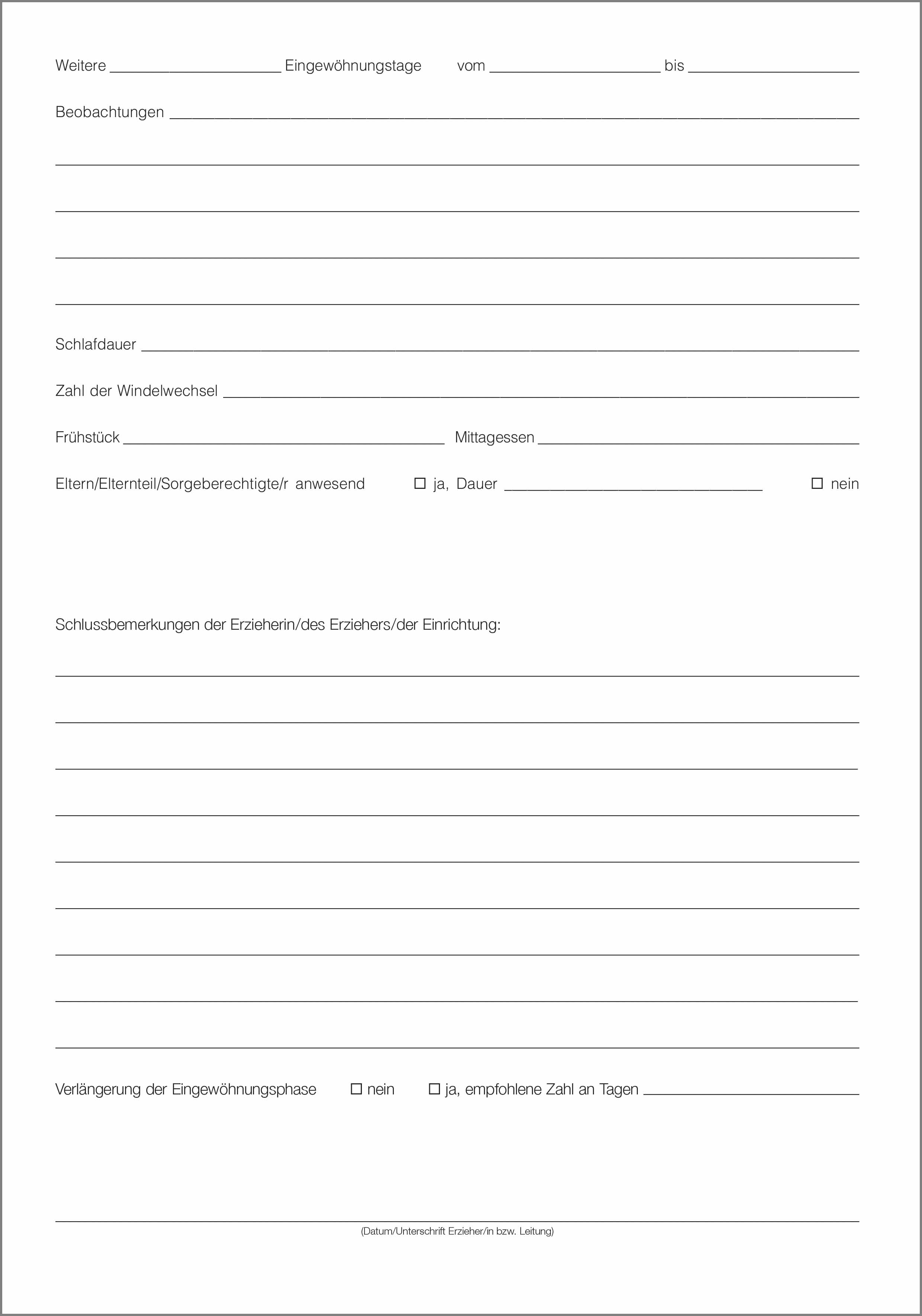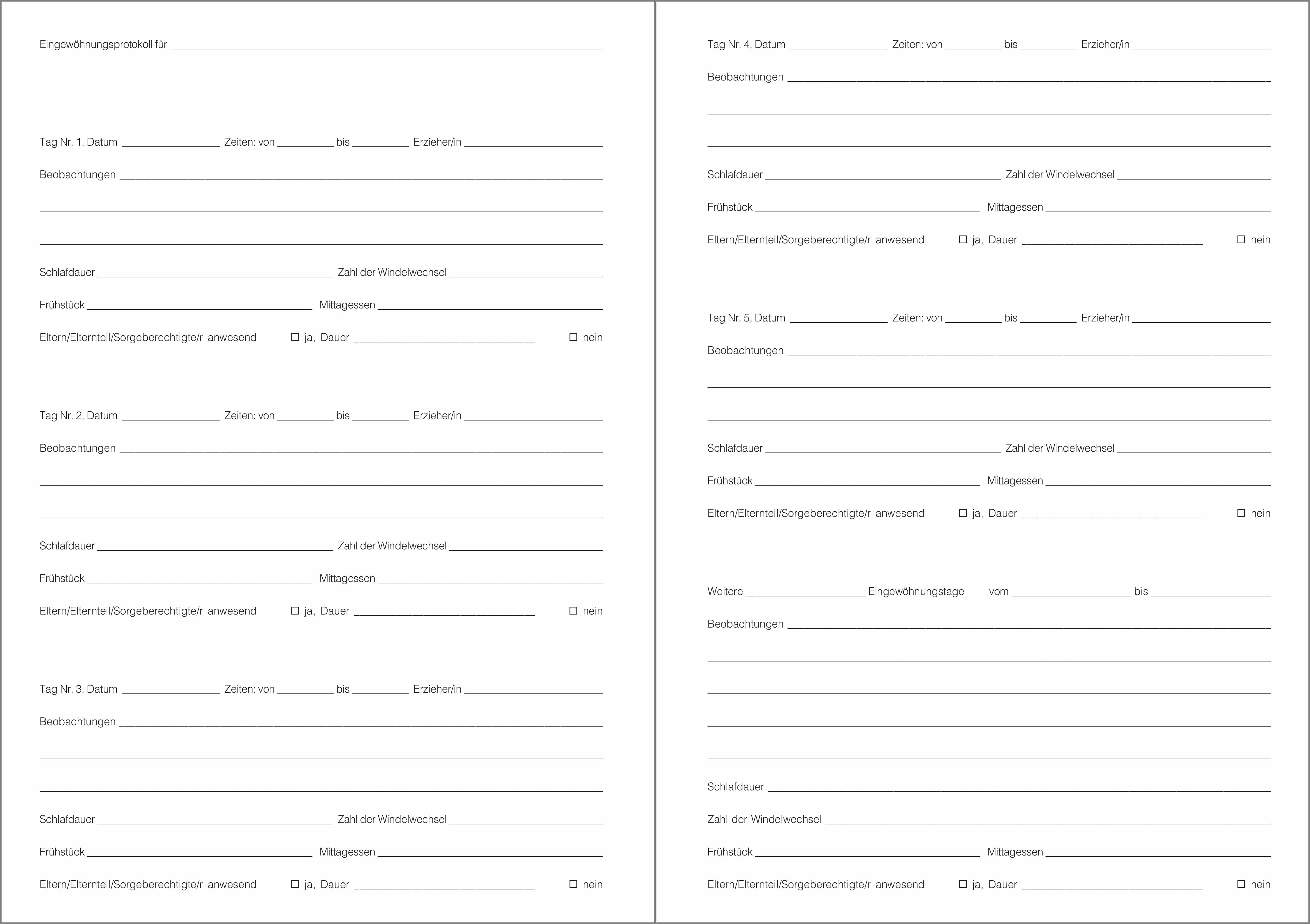 Dieser Faltbogen (10 Stück als Set) ist für die ersten 5 Tage und auch bei einer Verlängerung der Eingewöhnungsphase hilfreichund enthält Raum für wichtige Beobachtungen, Schlafdauer, Windelwechsel und eingenommene Mahlzeiten.