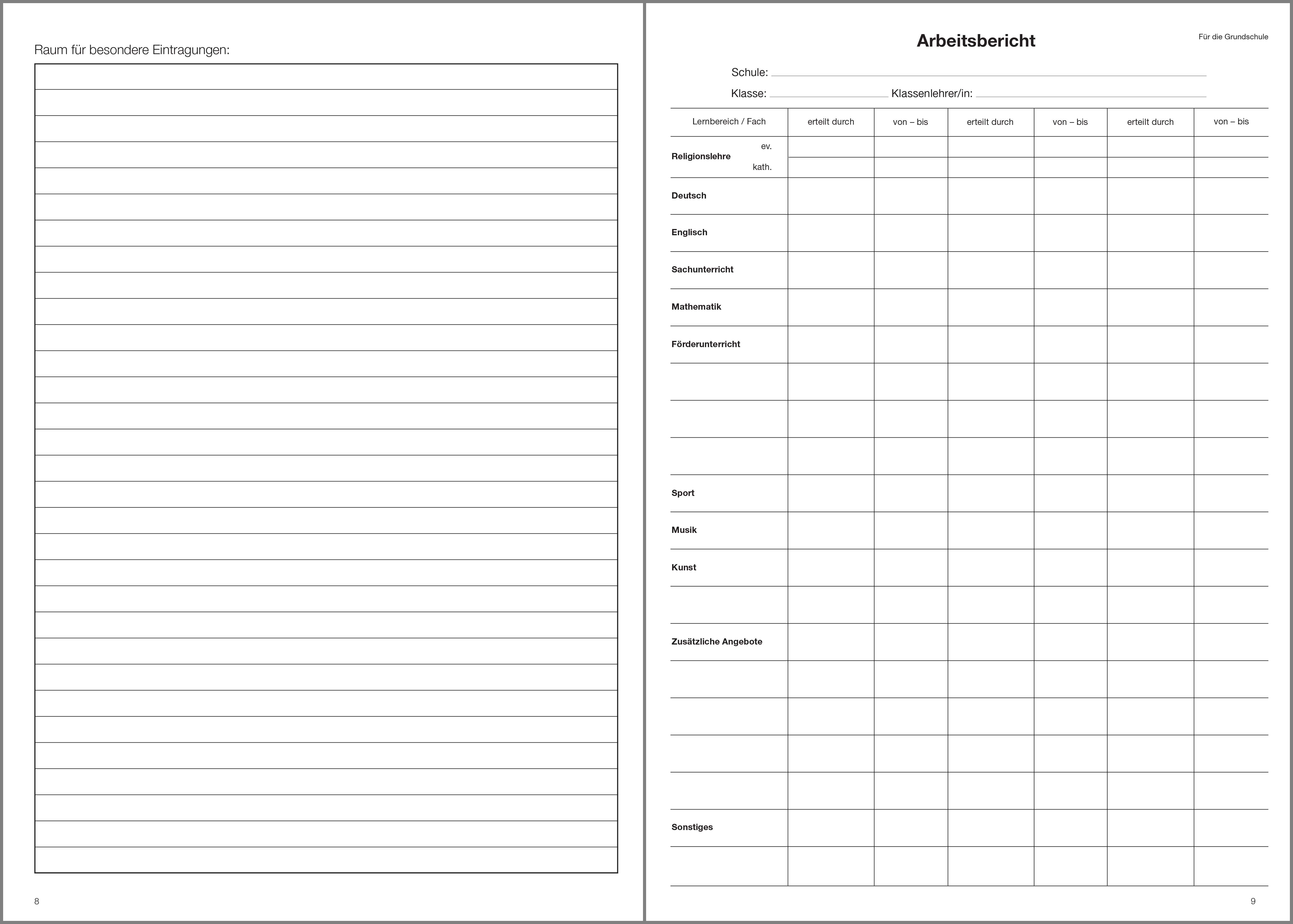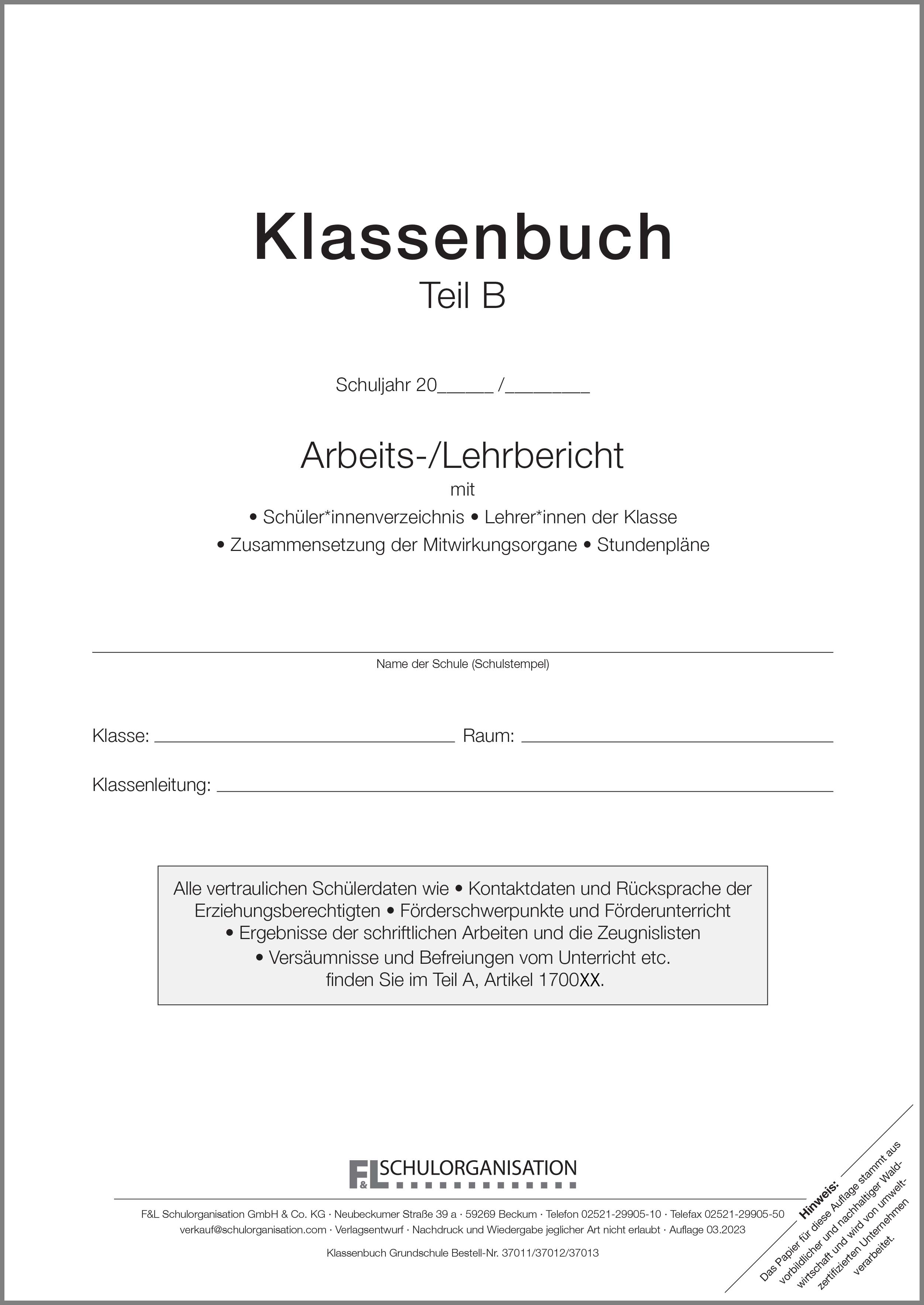 Klassenbuch Grundschule Teil B wochenweise, Inhalt für LoseBlatt-Anwender nur noch im Schnellhefter Artikel-Nr. 037013 lieferbar.