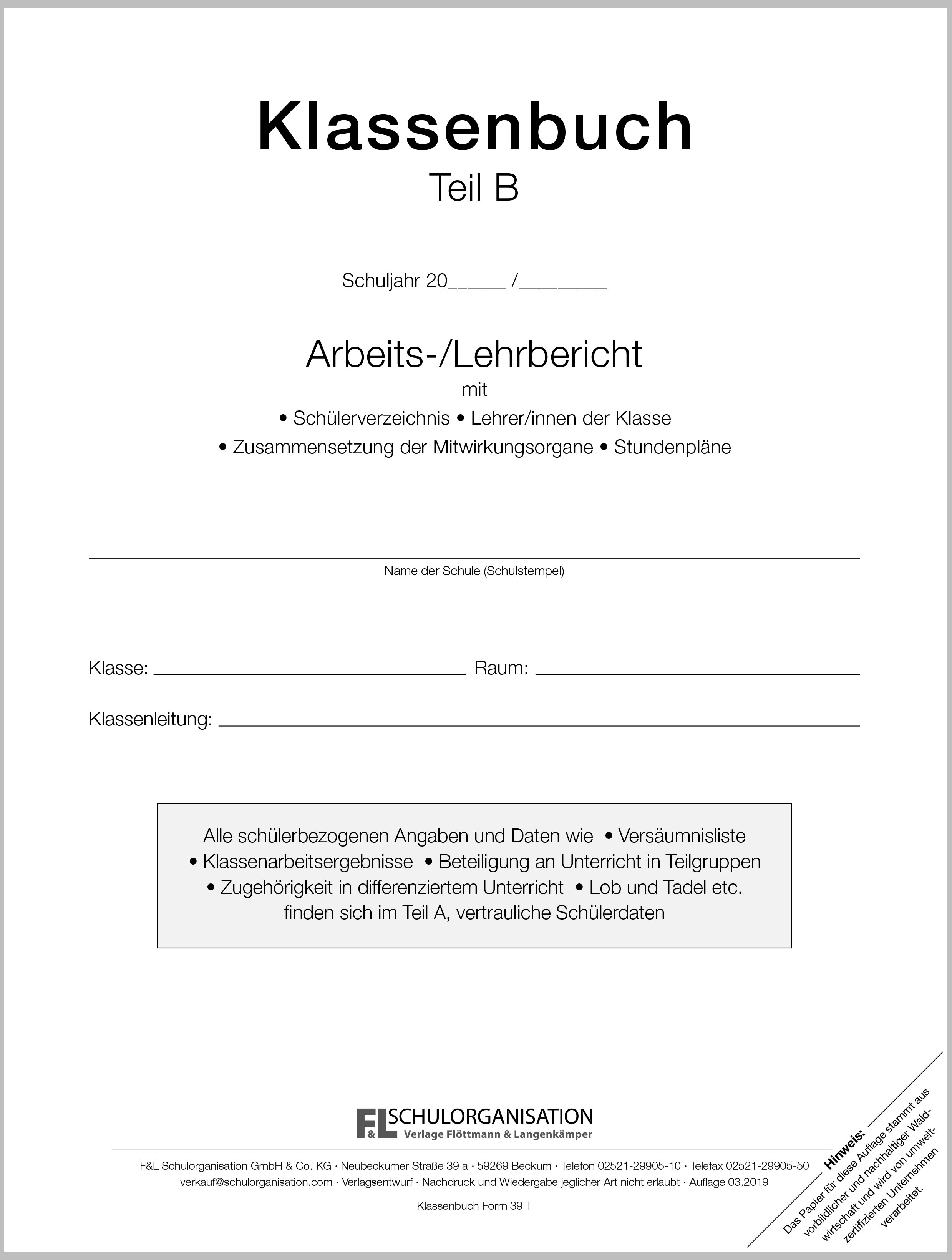 Klassenbuch FOS Teil B wochenweise, Inhalt für LoseBlatt-Anwender nur noch im Schnellhefter Artikel-Nr. 039013 lieferbar.