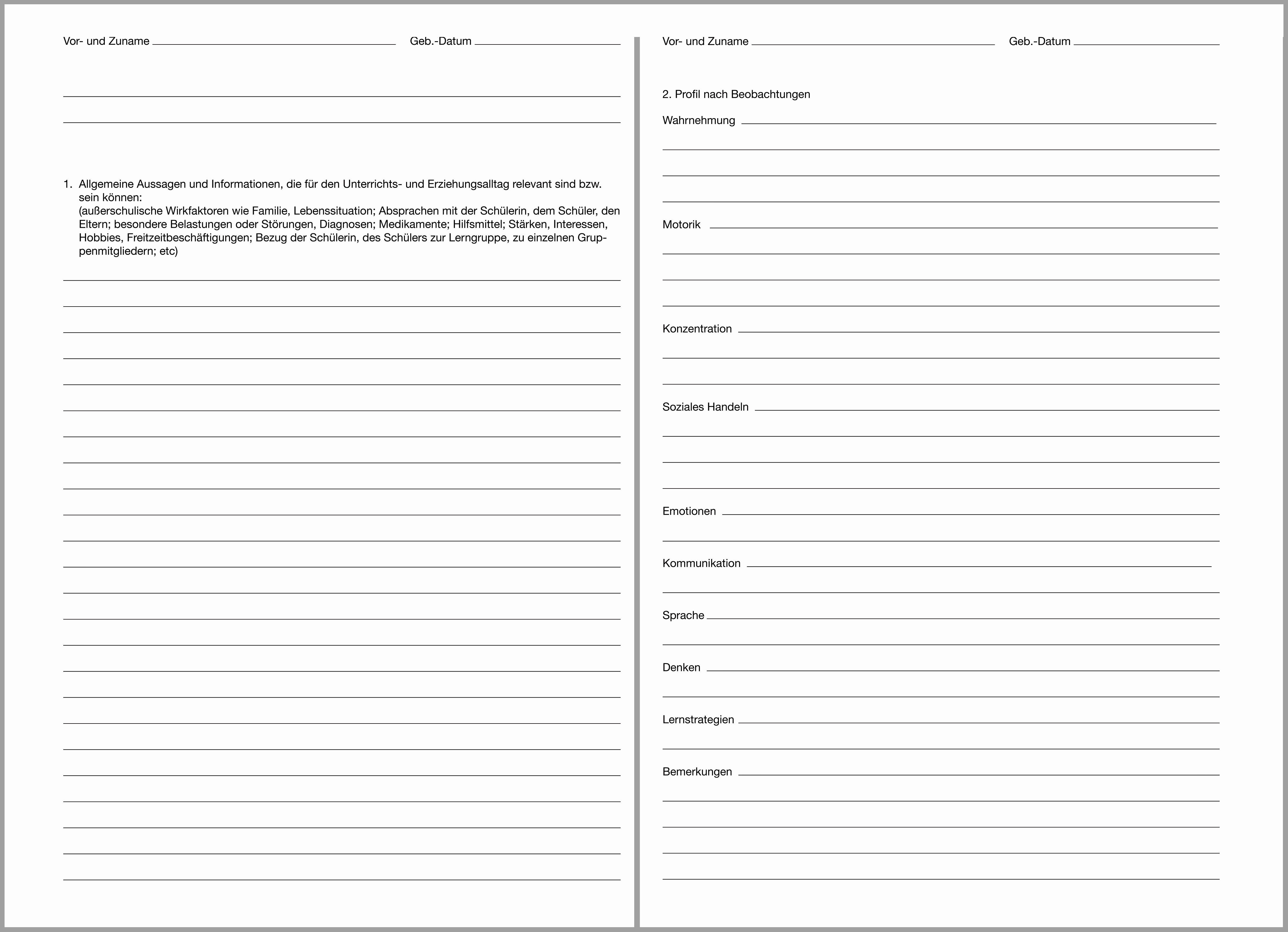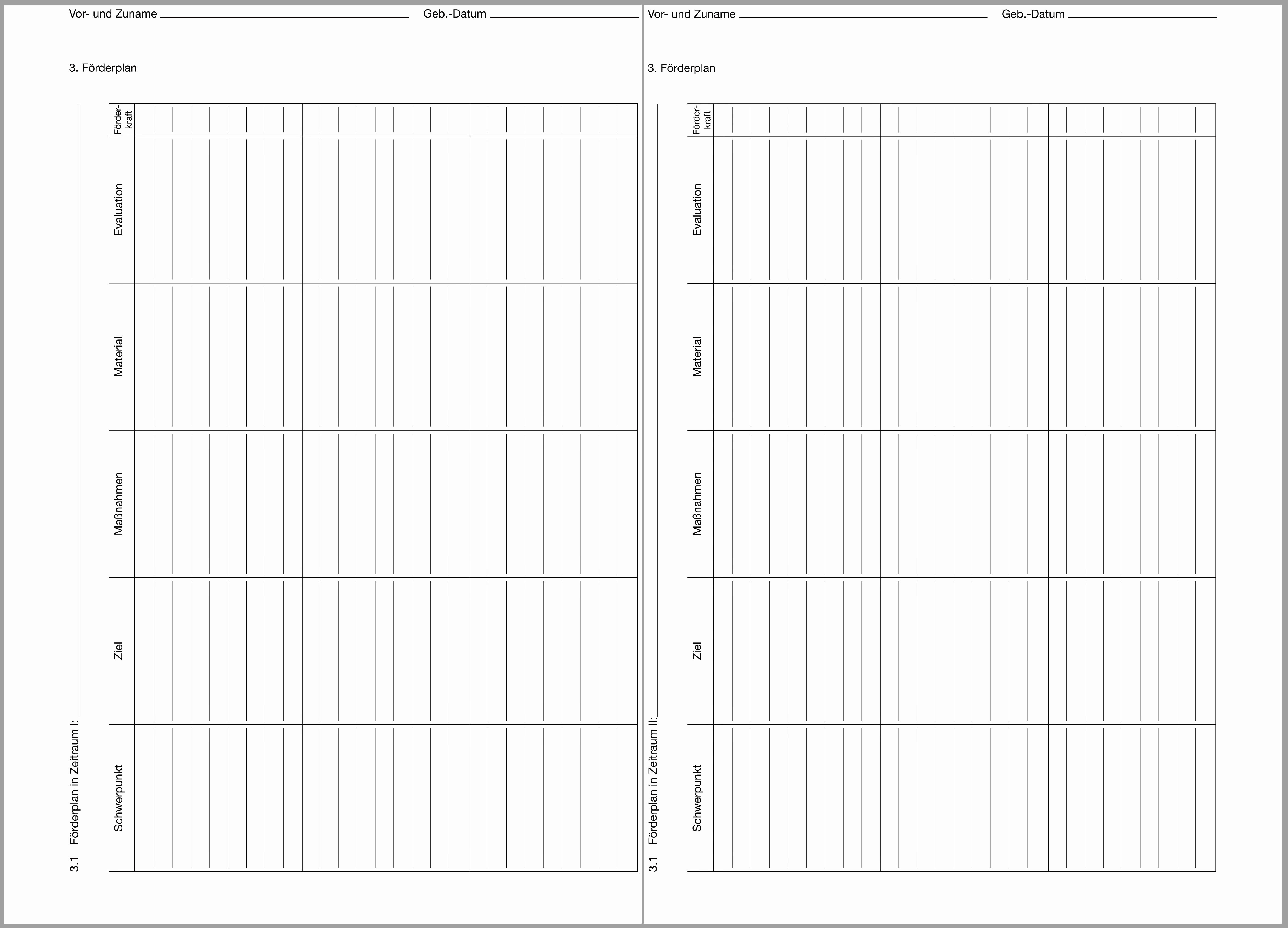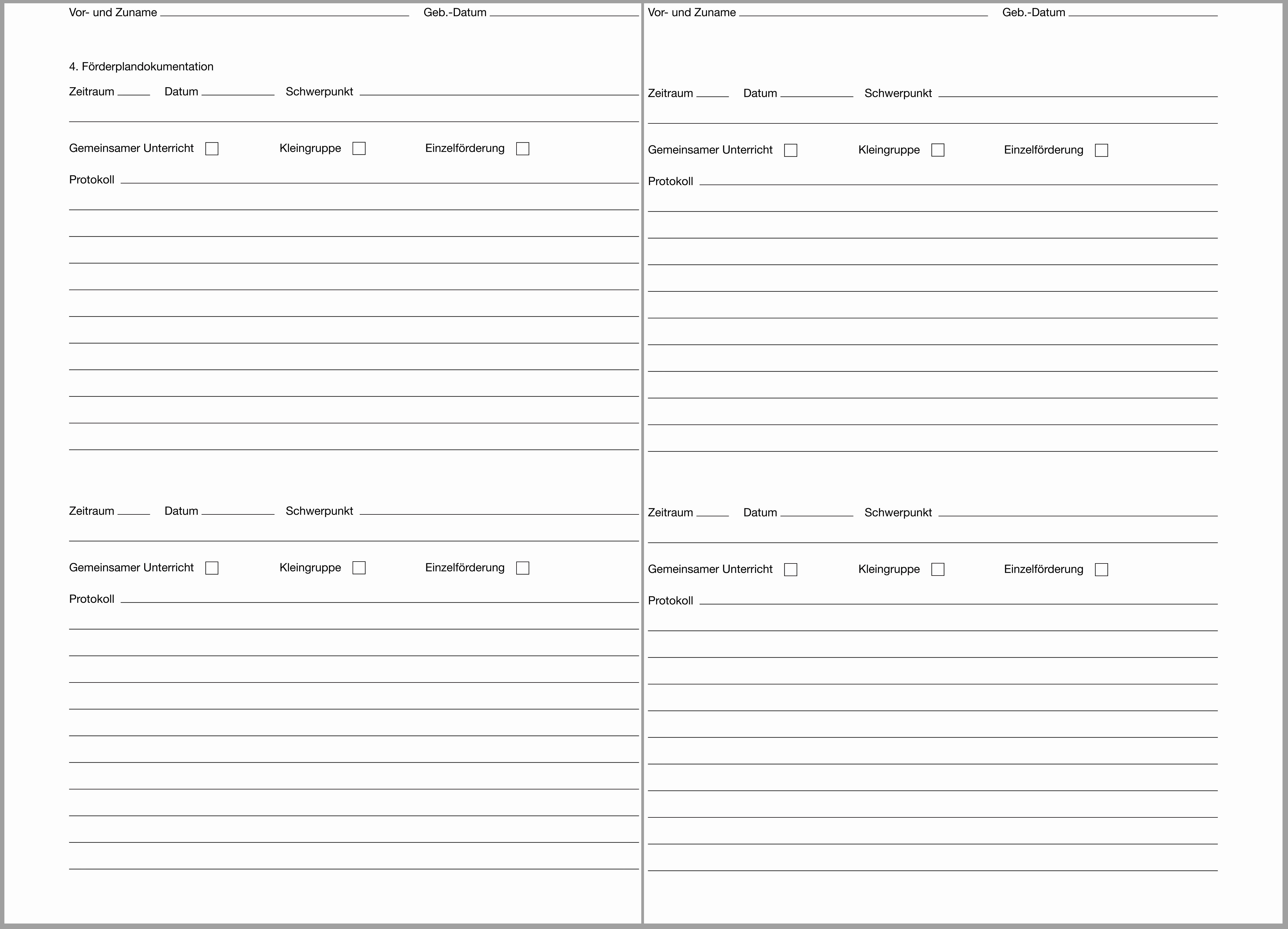 In diesem Heft wird die Förderung für ein Kind verwaltet. Die Förderplanung ist in vier Bereiche