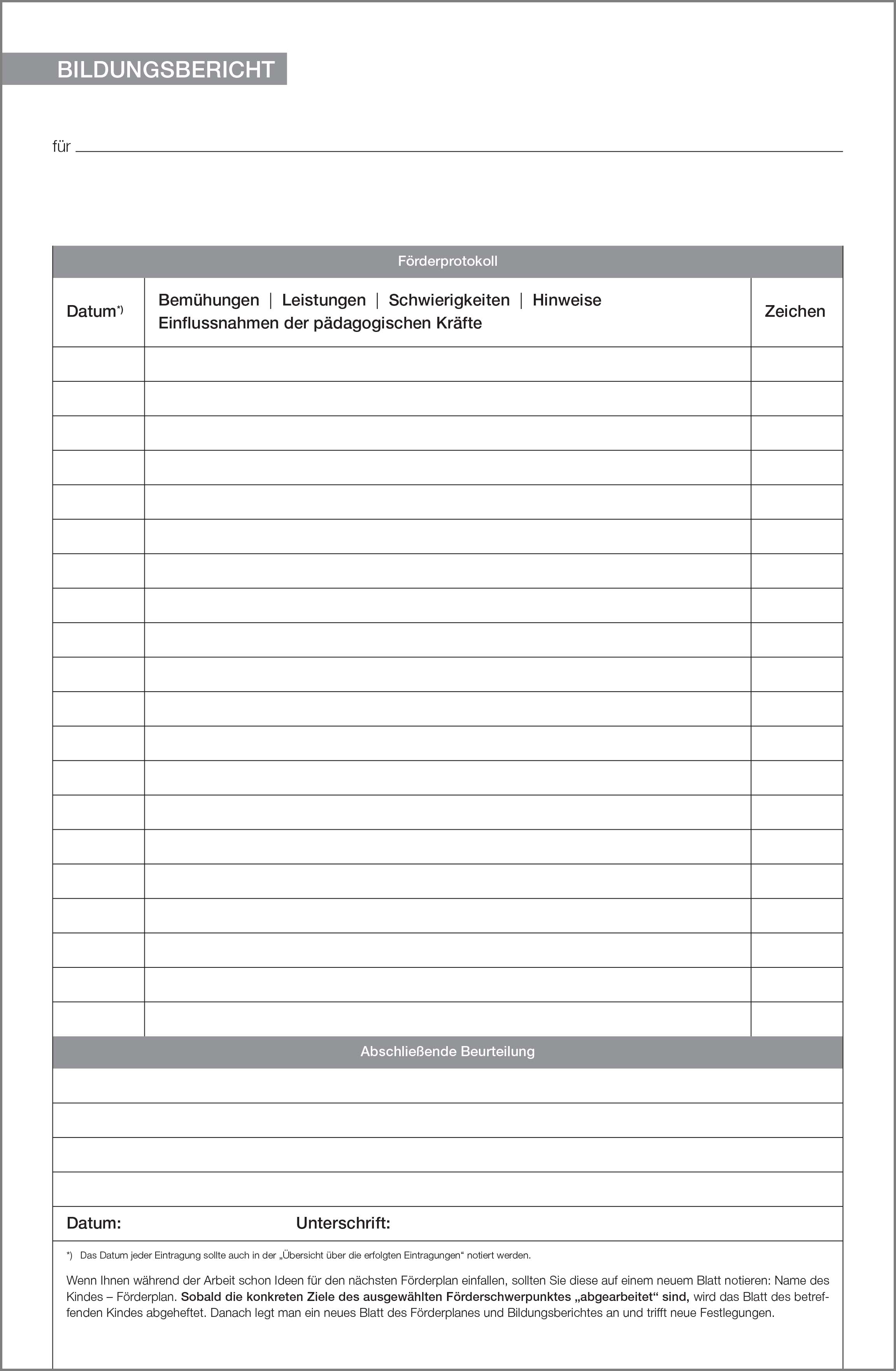 und die durchgeführten Fördermaßnahmen dokumentiert werden. Für 20 Kinder, Schuleingangsphase.