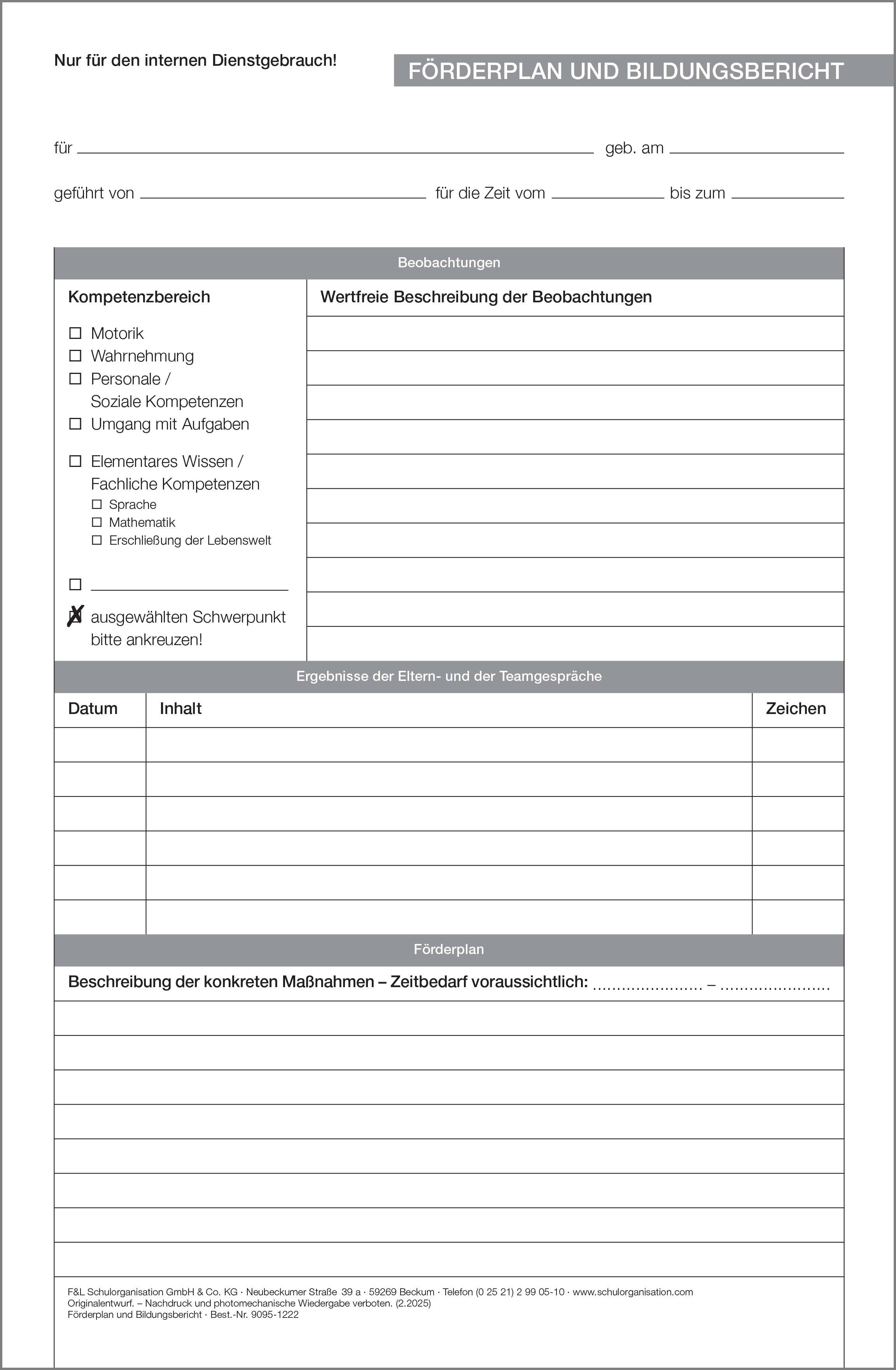 "Förderplan und Bildungsbericht" entwickelt. Mit seiner Hilfe können individuelle Förderpläne erstellt