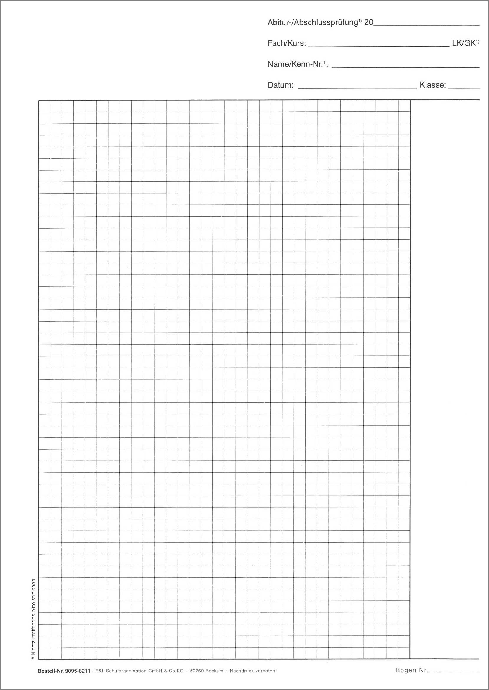 Hüllbogen für die schriftliche Abiturprüfung / Abschlussprüfung mit Korrekturrand (ca. 30 mm), kariert.