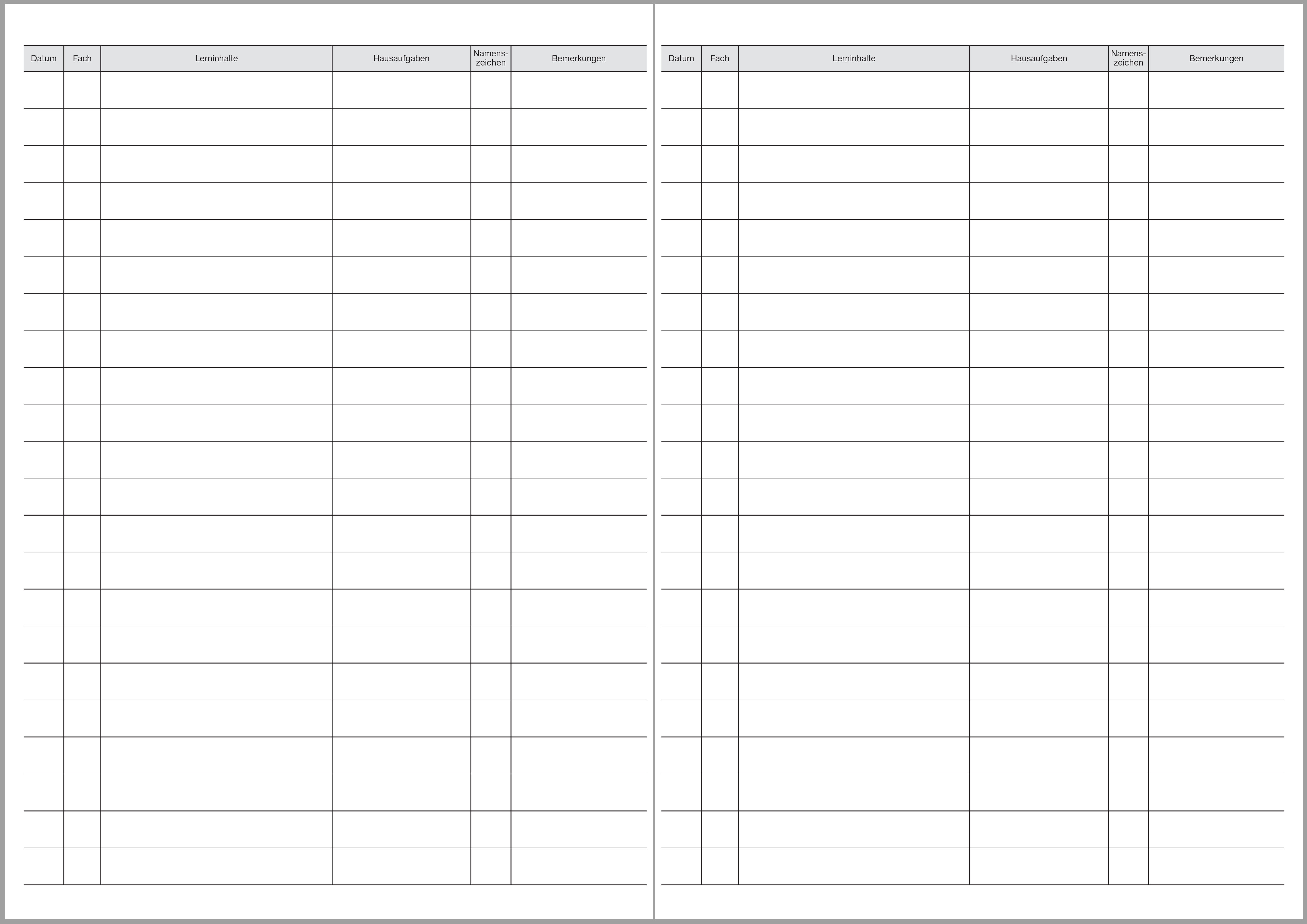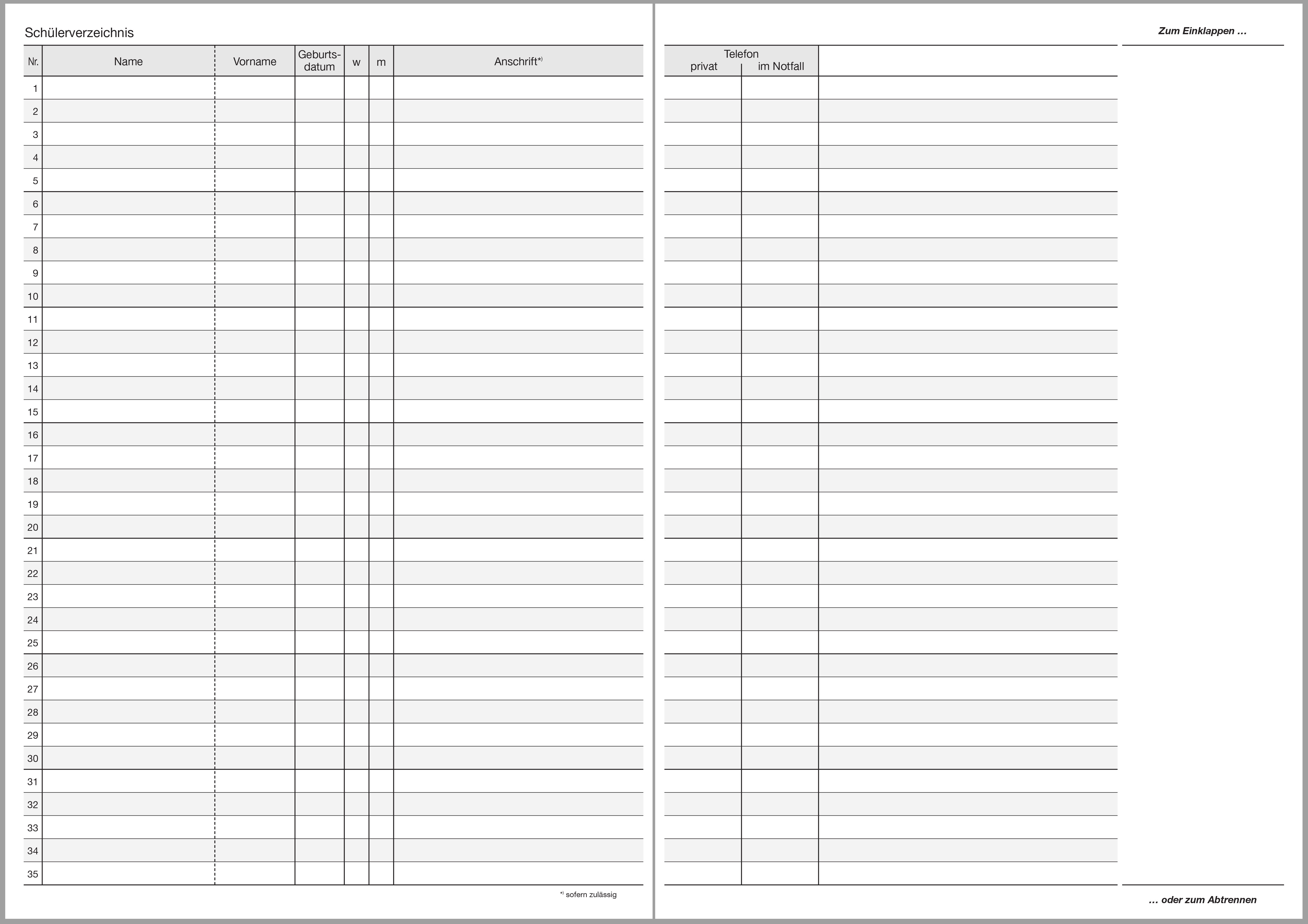 Kursheft als spezielle Fassung für das Berufskolleg mit Anwesenheitsliste
