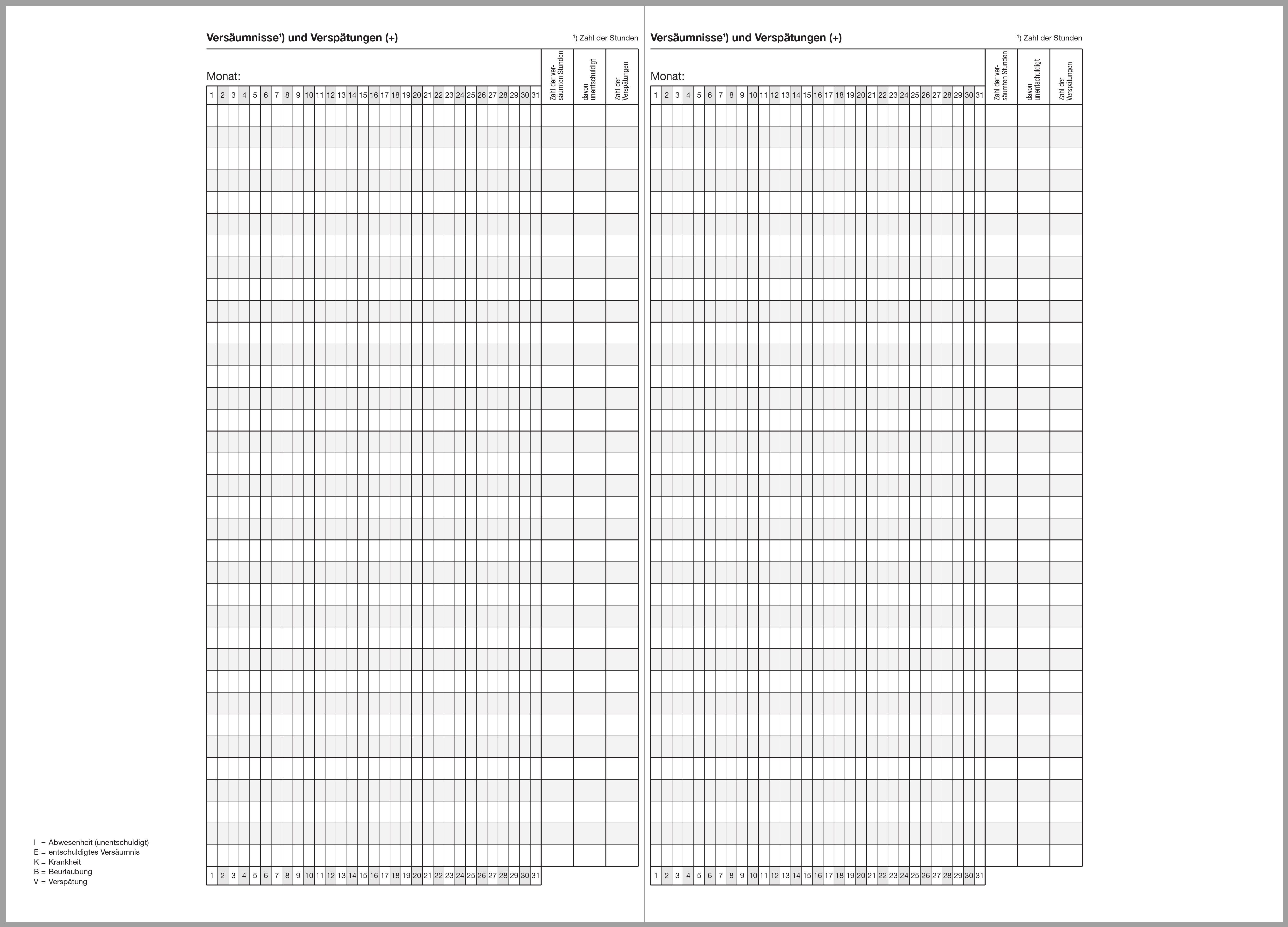 Eigenschaften "Kursheft für ein Schuljahr mit Versäumnislisten"