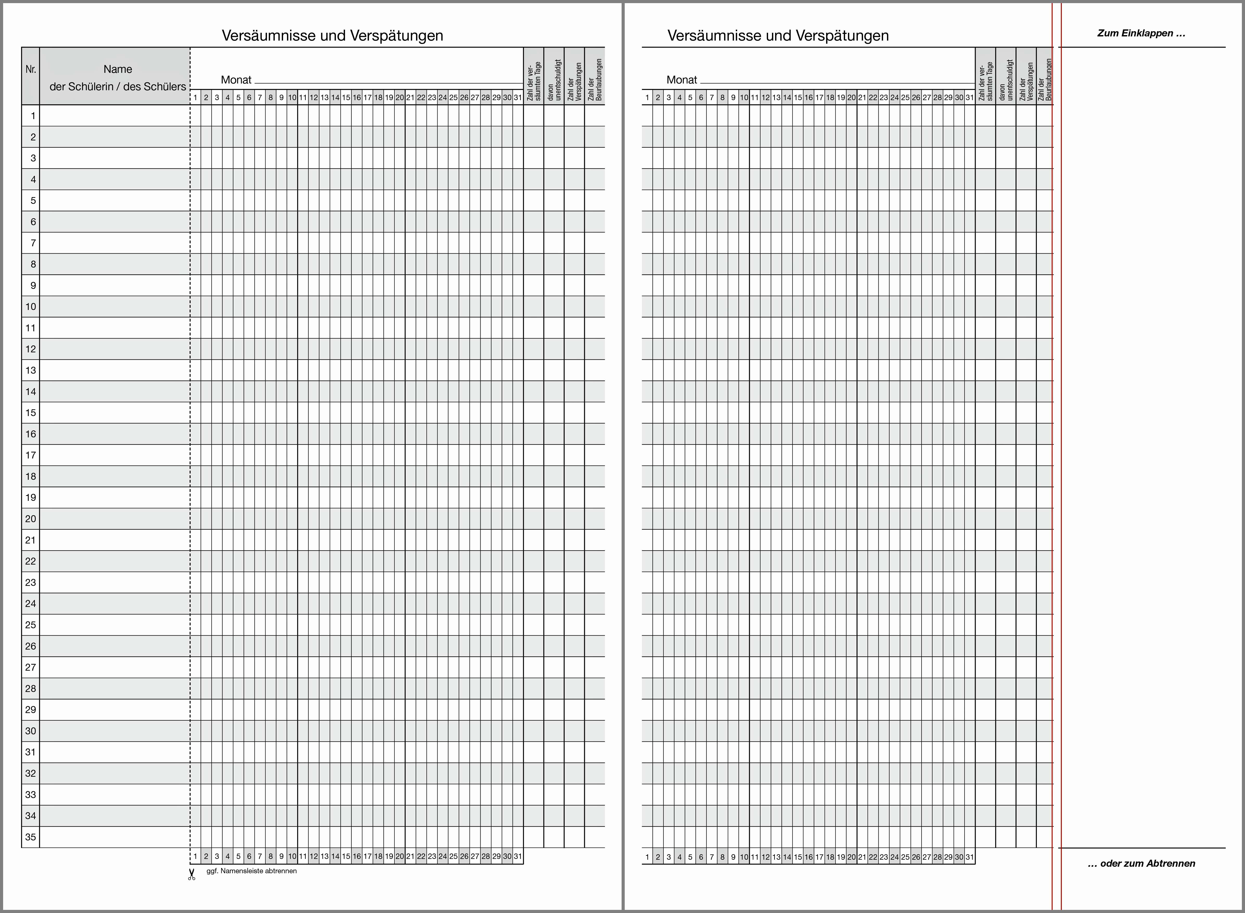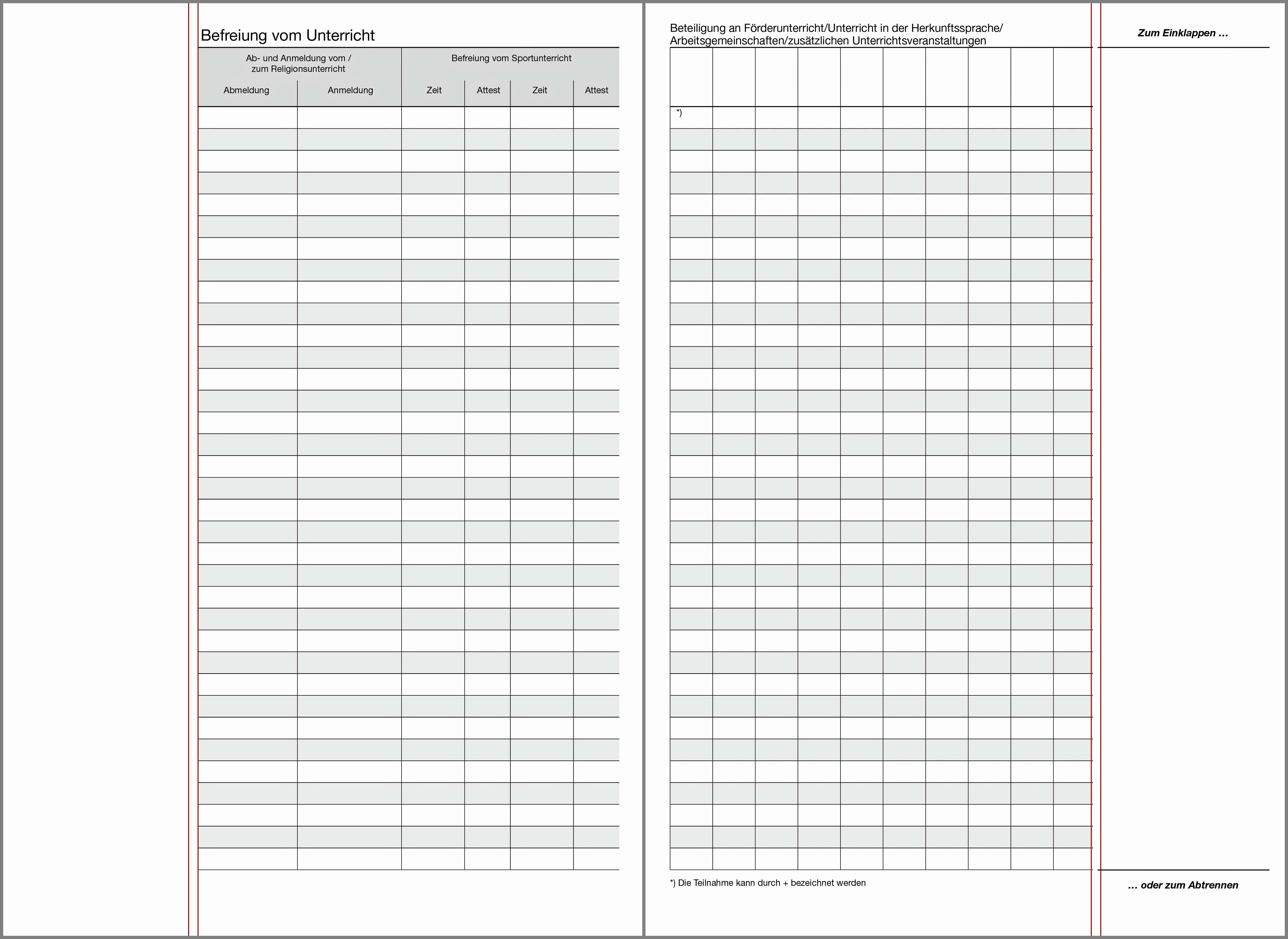 Leistungen, Klassenämter, monatlichen Versäumnislisten und Seiten für den