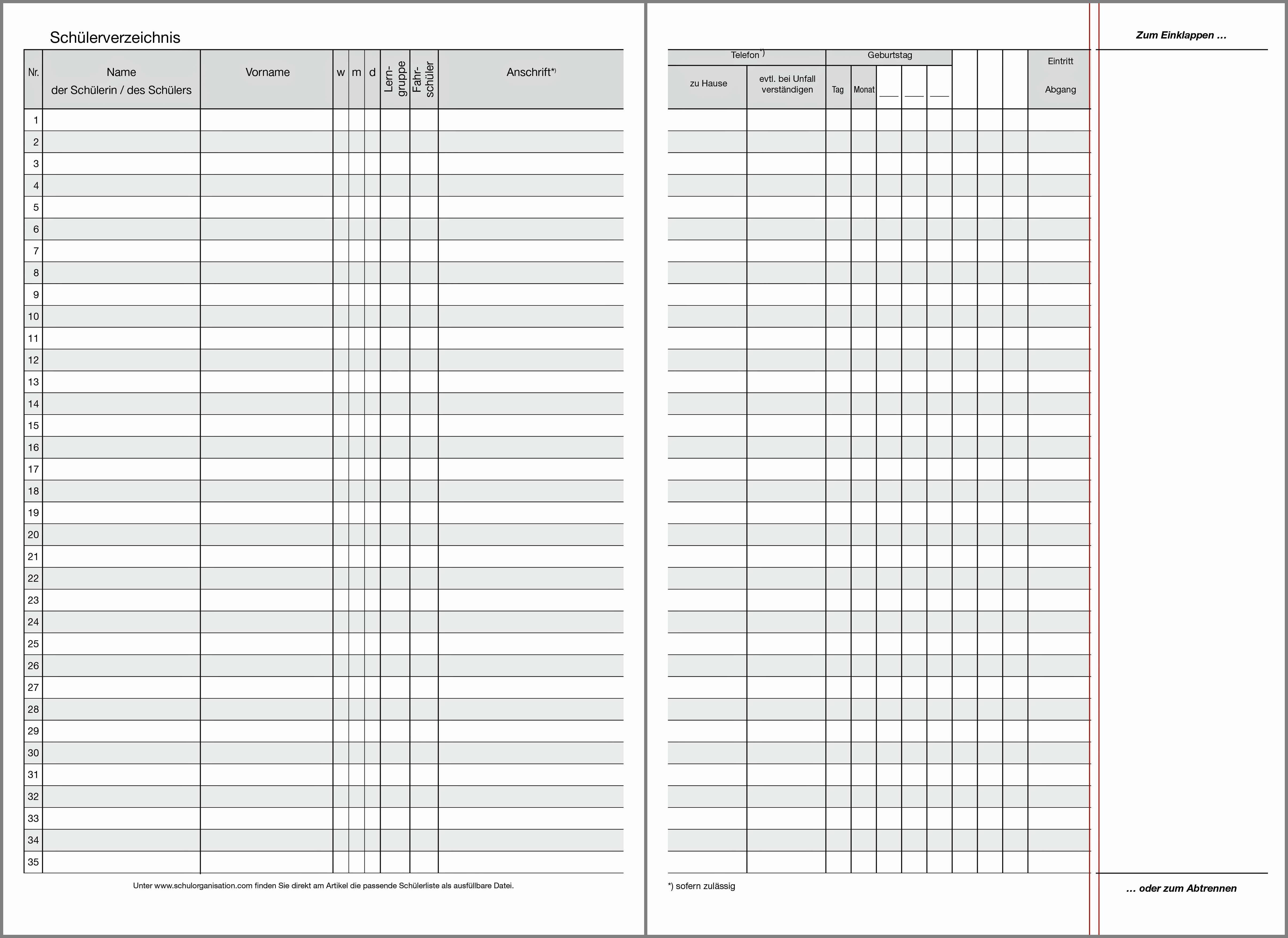 Klassenbuch wochenweise mit ausführlichem Schülerverzeichnis, Seiten zu den